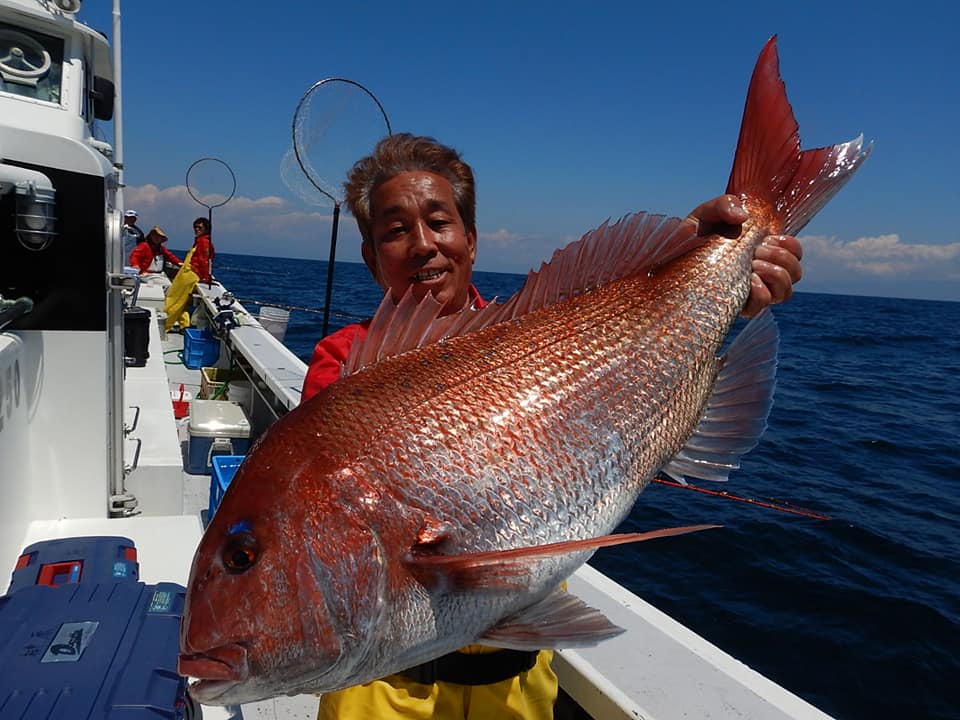 クラブの例会で石花海大鯛狙いで出船しました。ここ石花海では例年土肥沖の乗っ込みが終わる頃に開幕し、7~10kgの夢の大鯛を狙って釣ることが出来る全国屈指の大鯛場です。かなりの起伏ときつい根の中での釣りとなるので船長推奨はハリス5号以上の15m。真鯛針も11号とかなりの大仕掛けになりますがそれだけ相手も大きいので、とりあえず大鯛一本の時はこんな仕様でやることになります。少々凪の悪い中での出船となり、南側のポイントは時化でいく事もできずに北碓で転々とコマしこみつつタイだけを狙っていきます。前半にクラブの和田・吉澤両氏にアタリが出て2kg級が一匹あがり、続いて本田氏が同じく2kg級を上げるも後が全く続かず大苦戦。しかし11過ぎ頃待望の時合いとなり、このタイミングで和田氏が現在剛樹で開発中の極みハリス4号を用いた仕掛けにチェンジしてからは和田氏の独壇場に。6.45kg頭に4投で3枚!そして時合いも終了。圧倒的でした。私にはイサキとウマヅラハギが釣れたのみで今回は撃沈でした。剛樹のテストロッドもハリスも良い感じで開発が進んでいる様です!発売が楽しみですね。記録的大鯛狙うなら、これからの時期は石花海がオススメです。