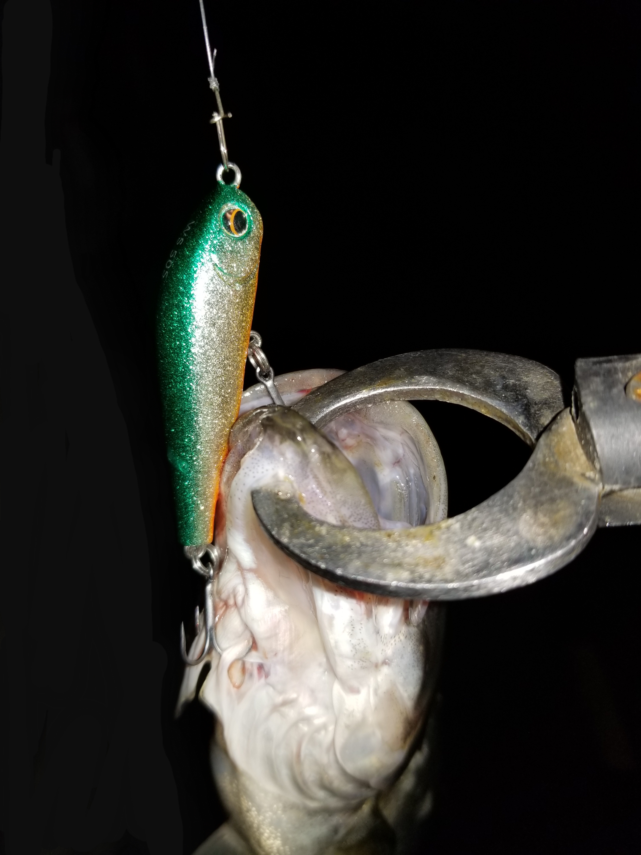 干潮からの上げでシーバスを狙いに名港へ!!ド干潮で魚の活性はなさそう…しかし、ベイトはしっかり残っている。サーチルアーとしてローリングベイト55をキャスト!リフト&フォール…でフォールをかなり長めに取るとーーーゴンッ!ヒット!丸のみでした。その後は続かず、上げがききだすまでボチボチ様子見をしているとボイルがちょくちょく出るようになってきました。よし!とワスプスラローム50sをキャスト!すぐにヒット!バイトはたくさんあるが乗りきらない…挙げ句の果てにはスレてしまい何も当たらなくなり…お手上げ状態。スレてるけど、鉄板バイブでも投げてみようかなと諦めながらなげると!当たる当たる!!そしてヒット!こいつだったかと次を釣ろうとするとライントラブル。諦め帰りました。