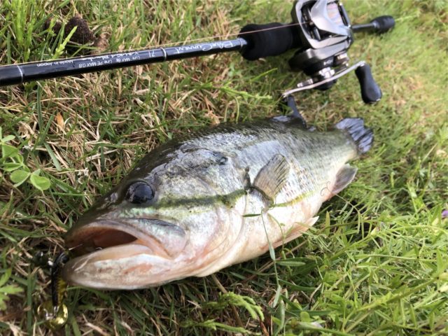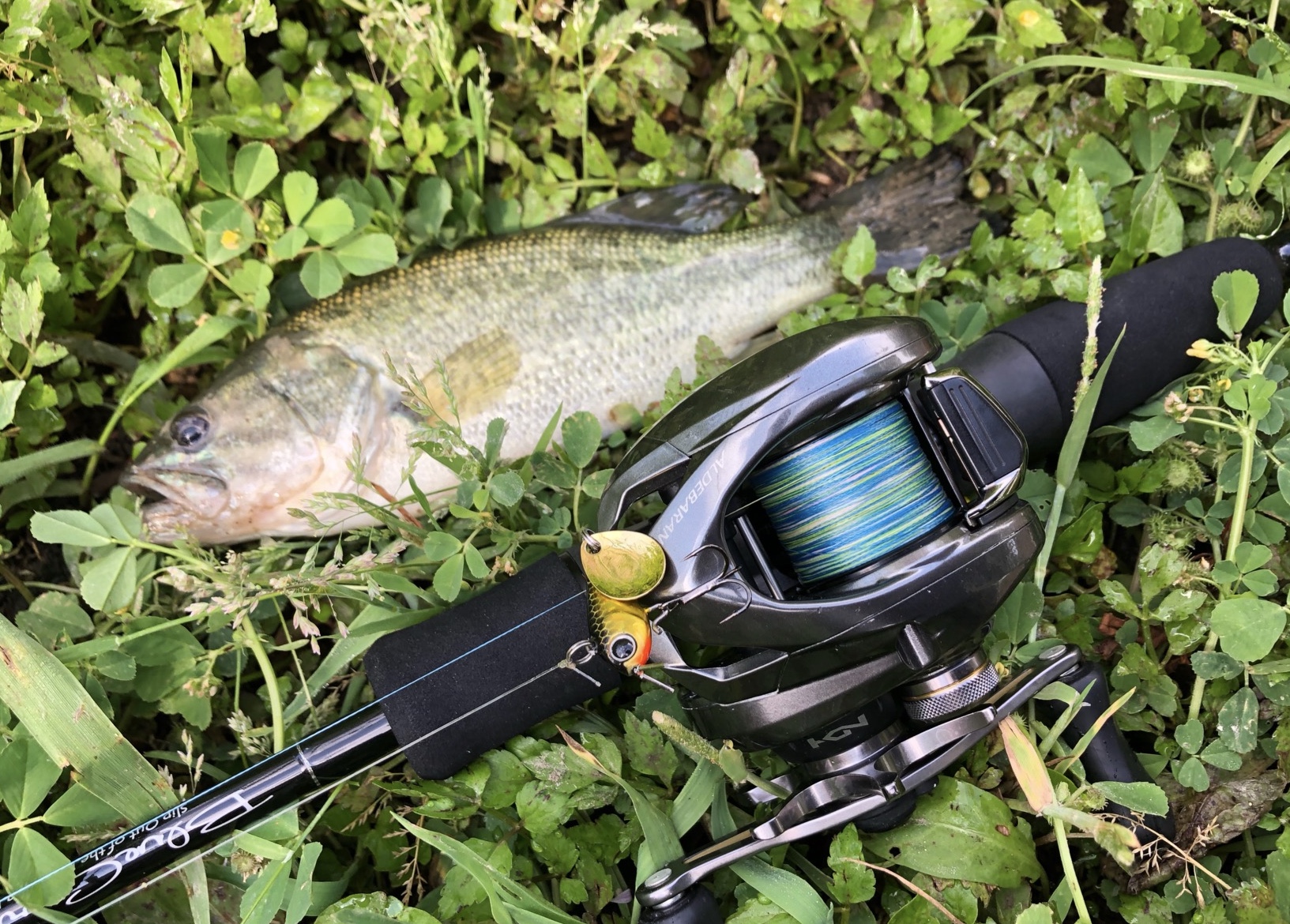 5月13日にバス釣りに行ってきました。最近は雷魚に嫌われています、、、ということで、数が釣れる釣りをしたい!!っとなったわけです。そして以前から気になっていたルアー、ティムコのライオットブレードがお店に入ってきたので即購入、即釣行してきました。使い方は簡単、ただ投げて巻くだけです。ライオットブレードの特徴であるヒゲのようなワイヤー、このおかげでカバーを遠慮なく攻められます。カバーでライトルアーといえばベイトフィネスが有利ですね。ライオットブレードはテーリングも無く、根掛かりも少ないです。泳ぎだしも安定しているのでストレスなく使えるルアーでした。