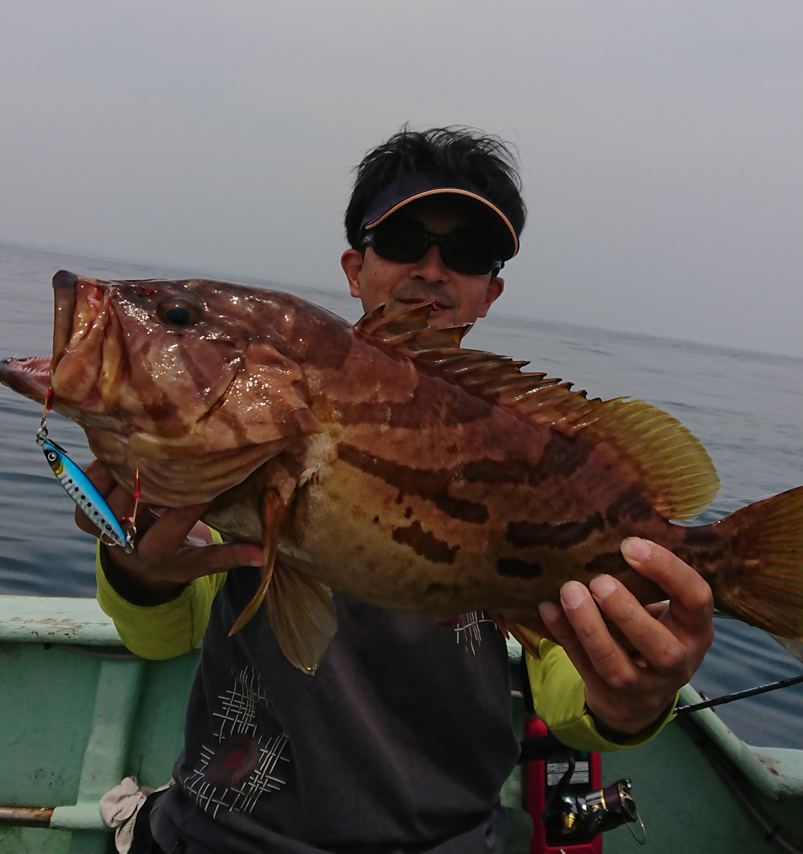 今回は、シーズンインが遅れている天秤フカセでのイサキの様子見と、スーパーライトジギングの二本立てに、和具の鋼進丸さんへ行ってきました。スタートはエサ釣りから、水深18mの浅場でイサキ狙いです。場所をやや深場に移して再度挑戦したところ、ポツ・・・ポツ・・・とイサキがヒット。エサ取りの合間に50cm程のマダイをゲット!それからグレ、そしてエサ取りの正体らしき巨大ウスバハギをゲット。こもまま続けても釣果が伸びそうにないので、天秤フカセに見切りをつけてポイントを移動し、スーパーライトジギングで五目釣りに変更です。あちこち魚の気配を探して移動した結果、水深50mラインの岩礁帯を狙う事に。リリースサイズのホウキハタやアカハタ、アカエソ、ヒメ、アヤメカサゴ、巨大なイラ等次々とヒット!そうこうしているうちに船長が良型のキジハタをゲット! 今日は負けたか? と思っていたら、次は自分に良型のマハタ!! ロッドはアンロック ライトジギング SP6.2fUL ジグはクレイジーオーシャン フラッシュメタボTG 60g魚が掛かってからの竿の曲がりに予想外の安定感があり、細糸でも安心してやり取りができました。そして次にまたアタリ! 一瞬根掛かりかと思うズッシリ感の後、グッと走る重量感。上がってきたのは先程のマハタより少し大きいホウキハタ! 出来過ぎの釣果で大満足して納竿となりました。