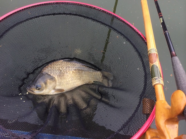 まずは写真をご覧ください!金色のヘラブナです。 こんなの初めて見ました!何か良い事ありそうです。スタートは8尺の浅ダナ両ダンゴです。今日はマルキューの新エサ! グルテンダンゴを使ってみます。このエサで釣りが激変すると言う・・・ がどうか?スタートはまずまず調子良く釣れてくる。しっかりなじませてから戻し始めのアタリを狙って釣って行きました。まだまだ使い始めで試行錯誤です。 エサはしっかり粉の時に混ぜて水を入れてからもしっかり混ぜる方が良いと感じました。中途半端に混ぜるとダマが出来て気になります。1日中使ってみた感想はまだ、分かりません。今後も使ってみます。嗚呼・・・ 時間が立つにつれて渋くなってきた・・・ どうしようかな?エサはしっかりタナまでもたせられているので 7尺のチョウチンに変更しました。時間は14時過ぎて・・・ チョウチンの方がうまく決まり釣果が伸びました。最後は気持ちよく釣れて納得。暑くなりました みなさん熱中症対策はしっかりとしてお出かけ下さい。