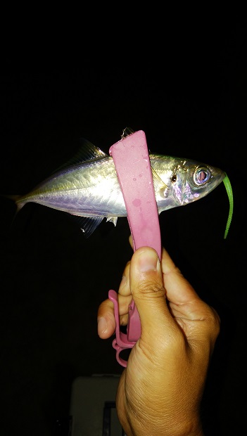 前回に引き続きアジングに行ってきました!21時30分頃にポイント到着!早速釣り出すがアタリが無い・・・。少しして小サバがポツポツ釣れ出す!底付近を丁寧に狙って行くと本命のアジがヒット!サイズは20cmほど!そこからアタリが連発!サイズも20~24cmと型揃い!10匹ほど釣ったところでアタリが止まる・・・。ここでS氏が合流!喋りながら釣っていると再度ポツポツとアタリ出す!足元にはシーバスがたくさんいるので釣れたサバを泳がすとバクリと喰うが針掛かりせず・・・。ミノーを引くがノーバイト・・・。そしてアジングに戻り0時になったのでこの日は納竿!約2時間半の釣果は、20~24cm・18匹でした!今回も刺身で美味しく頂きました♪♪今回のルアーも全てレインズ・アジキャロスワンプでした!