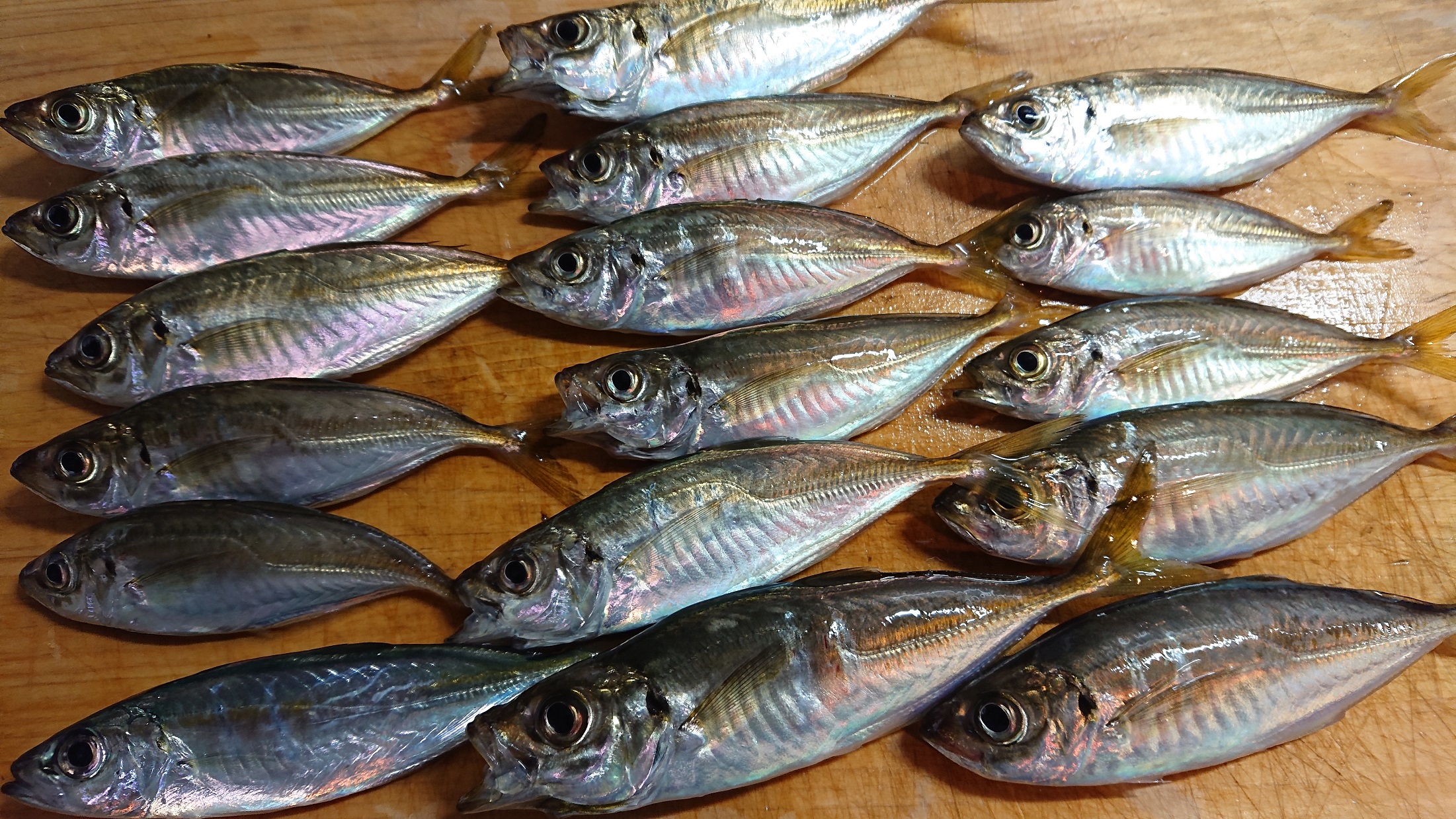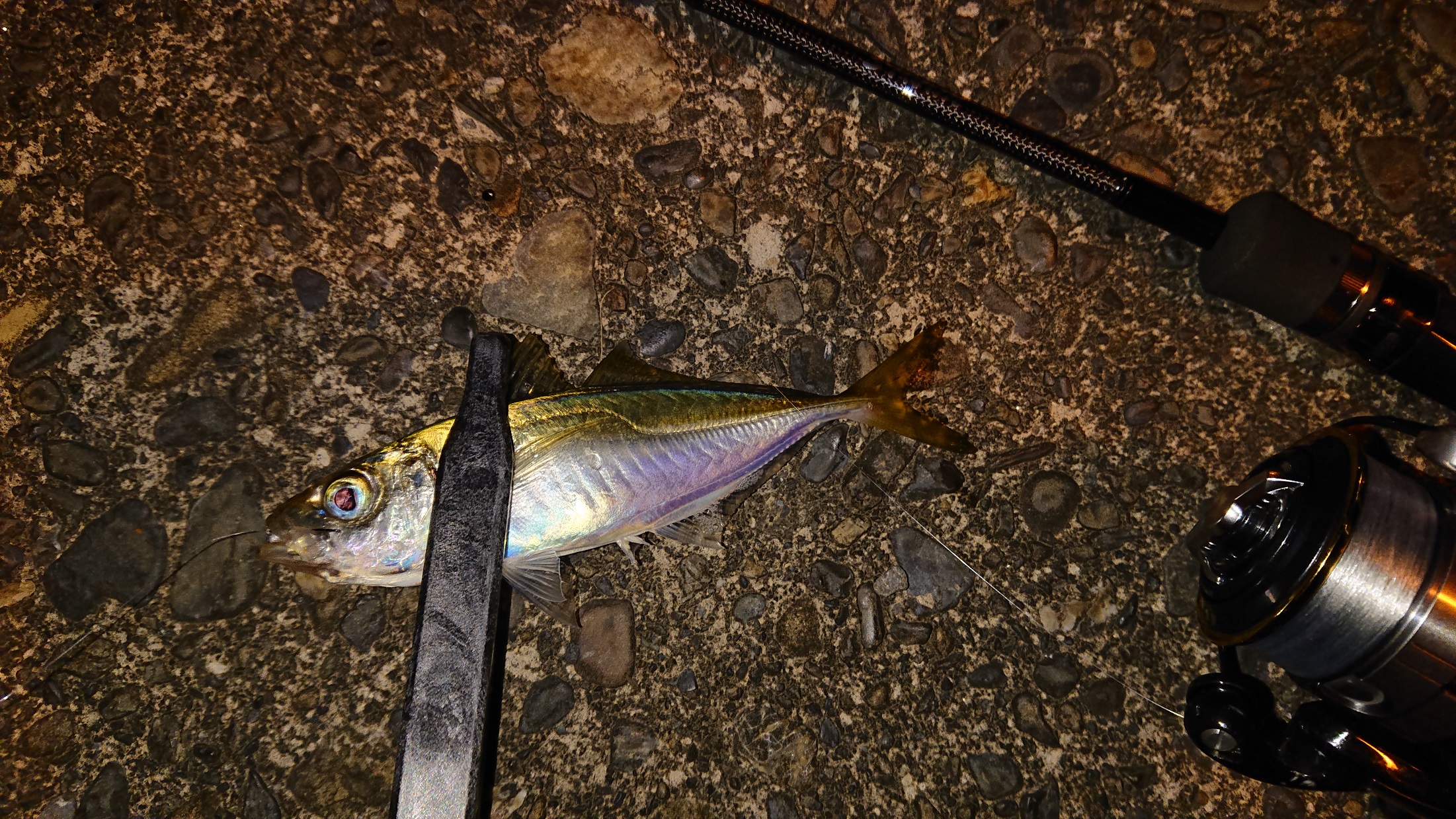 仕事帰りに焼津港に行って来ました。ルアーはアジメバアーミージグヘッド0.4gにチビキャロスワンプをセッティング。いつも同じセッティングですが、良くアタルのでこればかり使っています。カウントは7くらい。モゾというアタリで掛け合わせていきます。コツというアタリの時はすでにアジがルアーを吐き出してるような気がします。久しぶりにまともなアジの群れに当たったようで、本命アジがポツポツ釣れました。数匹釣って、カマスに変わり始めたら移動します。これを繰り返し17匹釣る事が出来ました。大きさは豆アジ~16cmくらいのサイズバラバラなアジでした。焼津港は一か所で粘らず移動した方が数を稼げます。