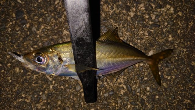 仕事帰りに焼津港に行って来ました。いつも通りカウント7くらいで、誘うとアジが釣れました。豆アジでも表層でひったくるような活性の高いアジは良く引きます。外道で釣れた小サバは18cmくらいありこれも良く引きました。アジは14匹の釣果でした。