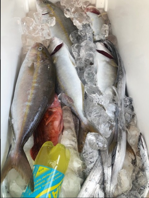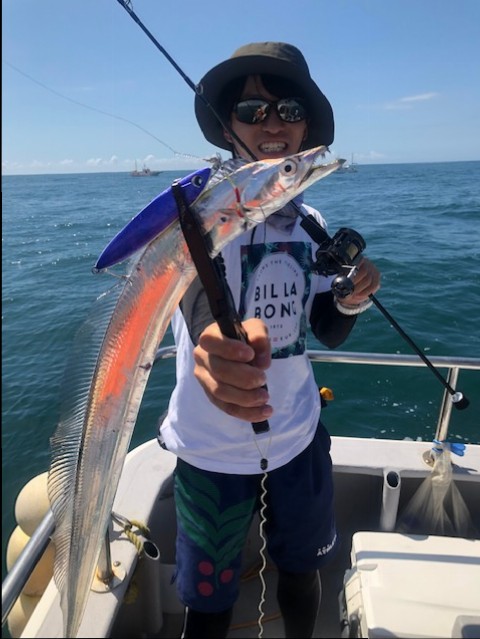 途中タチウオジギングをおこない指2~3本を何匹かキャッチ。鏡牙200gの紫が大当たりしました。そこからまた移動しても反応が無く終了。サワラ…..どこに……。