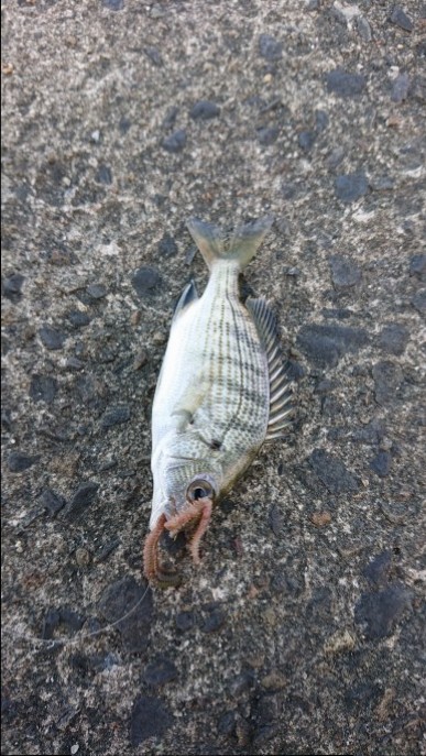 今回は、敦賀方面へ行き防波堤でのキス釣りを堪能してきました。天候が不順な日が続いていたので釣行に行けるか心配でしたが天候も良く釣り日和の一日になり一安心、途中石ゴカイを購入し近場の突堤へ先端まで行き遠投しますがキビレのかわいい子供が釣れてくるだけで中々本命に出会えません・・そうこうしているうちに本命らしき当たりがゆっくりと巻き上げながら更に追い食いさせ連れてきたのはプリプリの20センチ近いキスです。2投ほどすると当たりが遠のきどこにいるのやら単発で掛かりますが違う魚ばかり釣れてきます。納竿間際に堤防の際を探ると連発で釣す。2時間ほどの釣りでしたが15匹程で終了楽しい釣りになりました。水温も高く遠投しなくても堤防際で釣れるのでお子様連れの方もオススメです。刺身に出来るほどのキス一度チャレンジしてみてください!