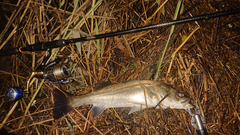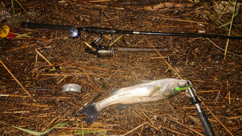 仕事終わりにシーバス狙いに行って来ました。ワーム コアマンのアルカリで近い距離で40cm前後を数本釣れました、その後はバイブレーション マービー90や少し重めのジグヘッドで遠い距離を狙い45~55cm位のシーバスを6本釣れました。