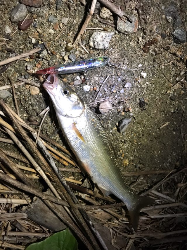 こんにちは。昨夜見た化け物を狩りにビッグベイター2人とリベンジに行ってきました。最初は姿を見た場所へ。入ってみるとボラがいない。色々投げましたが反応が無いので場所移動。新しい場所に入ると、ボラボラ…..ボラ。昨日と全く同じような場所を発見。最初はトップ。反応なし。いつもとパターンを変えてミニエント。なんとなく表層を引いているとゴンッ!エラ洗い!足元に寄せてきたのは65cm程のまあまあなシーバス。ランディングしようとしていたらフックアウト…。その後でかいボイル音が聞こえだし、隣でやっていたお客さんのジョイクロにモンスターがヒット!!物凄いエラ洗いをした時に痛恨のフックアウト。流れが効き始めたので、ルアーをマニックに変えて一投目。川の本流筋のよれに入ったところでゴンッ。遂にモンスターと会合です。でかい魚体と流れに乗ってどんどん出るドラグ。全く主導権を取れないままフックアウト。ルアーを回収するとフックが曲がっている….。その後1時間程投げてまたマニックに40cm程のシーバスがヒットするも、キャッチしたい気持ちが焦り足元バラシ。その後なんと珍しいマルタをキャッチして終了でした。 次こそは…!