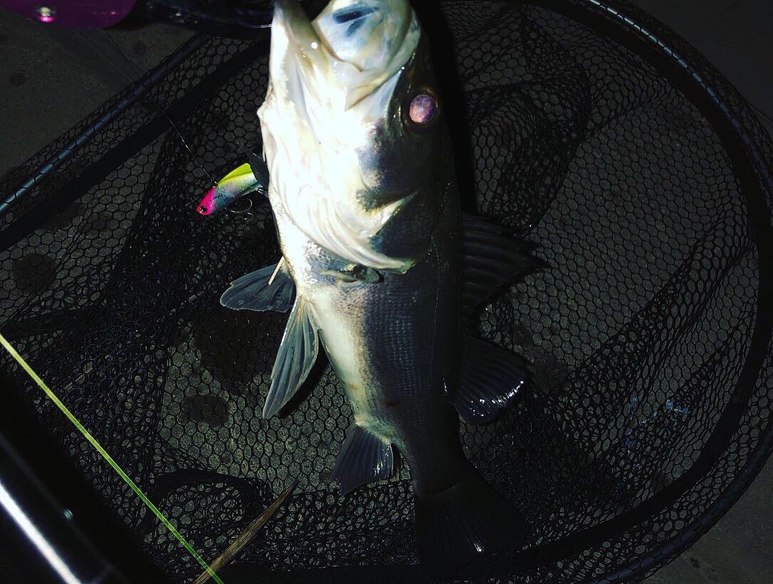 今回も名港河川にシーバス狙いに行って来ました!下げ止まり直前の時間だったので止まるまでやって帰ろうと思っていました。ポイントに着いて一投目、いつものようにとりあえずキックビートを投げるとなんと一投目でヒット!30くらいのでしたふが、目の前でバラシ。気を取り直して投げ続けるも潮どまりまで何も無し・・・釣らずには帰れないと上げの時間までやっていく事にしました!何もない時間が続きましたが流れが出てきた瞬間に何かヒット!キックビートサイズのチーバス(笑)その後ボイルがそこらじゅうでおき毎投当たってきますがなかなか掛らなかったり、すぐばれたりで上げれない中、やっとしっかり釣り上げれたのは自己ベスト65cmのシーバス!初めて60以上が釣れました!その後30cm前後のを3本追加して終了しました!最近キックビートでしか釣っていないので、違うルアーも使いましたがなぜか釣れたのは全てキックビートでした!名港河川も調子いいですが、そろそろ落ち鮎シーズンになってくるので次は木曽三川にチャレンジしたいと思います!