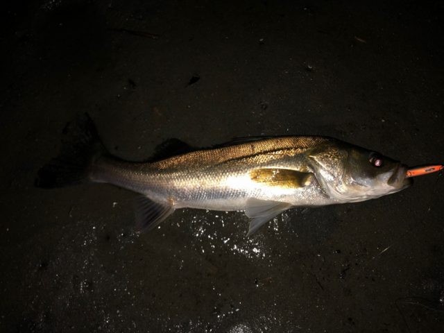 久しぶりにシーバスへ行きたくなったので名港シーバスに行ってきました!ロッドを買ってから1度も曲げておらず、気合が入ります。干潮2時間前からスタート、ベイトっ気はありなかなか良さそうな感じです。始めの方はいろいろ試してみますが無反応・・・1時間程ノーバイトでしたが遂にその時が!ロンジンのレビンミニにてバイト!50cm程のシーバスゲットです!更にもう一度同じコースを流してみると・・・再びバイト!時合が来たみたいです。2匹追加して反応が無くなり、TKLM90に変更して流してみると再びバイトがありましたが、これはすっぽぬけ。そしてそのまま潮止まりの時間となり、今回は4バイト3キャッチにて終了となりました。今回釣ったシーバスはどれもクオリティが良く、良く引いて楽しかったですよ~