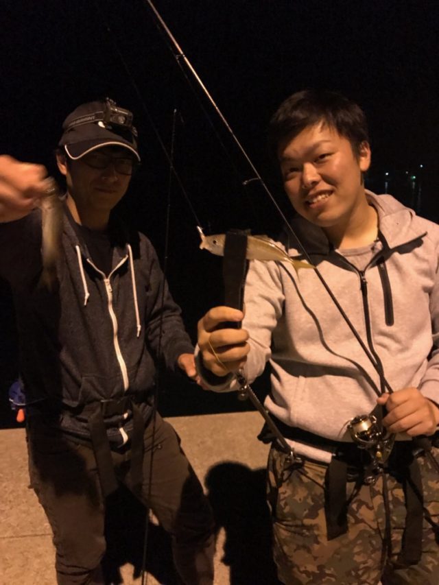 ごりちゃんです。ヒラメを釣った夜はアジングです!久しぶりのアジングで気分はノリノリ!疲労感なんて無い!オリムピックさんのご協力でコルトを貸してもらいインストア用のプロモーション撮影です!着いて二手に分かれます。少しして湾奥で釣れたそうなので移動していくとフグ!フグ!フグの猛攻でワームがかじられていきます。マズメが絡みそうだったので入り口に一番近いシェードを攻めるとヒット!居ましたアジちゃん!居場所が分かれば簡単で、カーブフォールで数は釣れますがサイズが出ないので、ジグヘッドを重くして釣り分けます。ボトムまで入れて軽くバンプさせるとヒット。中アジクラスが食ってきました。暗くなってからは表層に無限に豆アジがいて遊んでいましたが、外向きに投げると中アジがヒット。レンジを合わせて誘えば食ってきてくれます。店長は太刀魚を連発してました。私が太刀魚釣ろうとしても中アジしか食わなかったので、釣り方は店長まで!コルトは癖がなくとても使いやすいのでアジングを本気でやってみたいけど、ハイエンドまでは….って方にとてもおすすめです!」