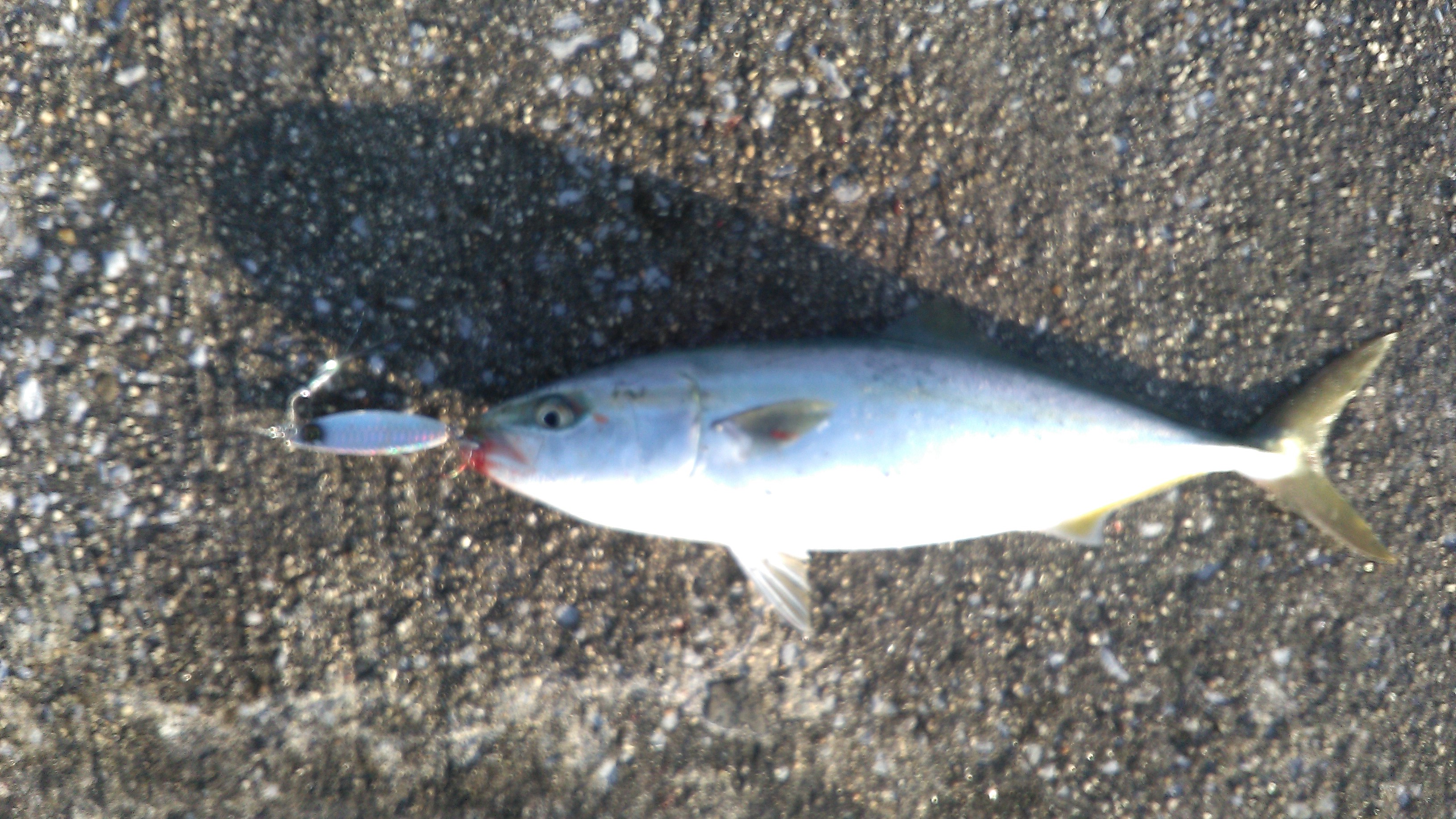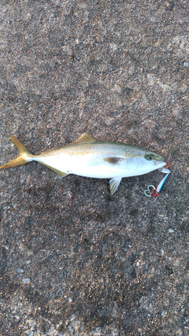 現着後、新堤の先端へ。タックルハウス・ピーボーイ65gを付け、2投目でヒット。しかし、バレ。その後、反応がない為、ルアーをメガバス・マキッパ40gイワシカラーに変え、2連続でツバスゲット。その後、マキッパで一本ツバス追加。反応がなくなったので、ボトムで何か釣れないかなと探っているとツバスもう一本追加。その後、全く青物の反応がなくなり、ボトムに集中。ボトムでカサゴ4匹。ヒラメ一匹が釣れて11時に迎えの船が来て終了でした。周りの方もツバスやサワラがよく釣れており、現在絶好調のようです。