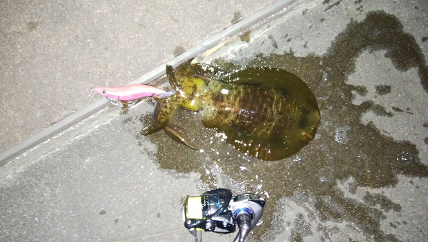 夜のアジングの前に夕方に志摩でエギングをしようと出発!16時頃から釣りをするものの釣れない時間が続き、17時を過ぎたころに時合のタイミングが今から??ってところで爆風に・・・。撤収です。そして、田曽浦に移動してアジング!この日は、S氏・K氏・M氏・S氏・私の5人で賑やか釣行!ですが・・・爆風。風を背中から受けれるポイントで釣行開始!アタリはあるが、ネンブツダイばかり。少ししてムツが釣れたがその後は・・・。相談した結果、浜島に移動!が、、、ここのが風がキツイ。それでも元気なみんなはアジング!私もと思い釣り出すが、2連チャンでライントラブル・・・。これはエギングをと思いタックル変更です!するとすぐにヒット!!!500gぐらいでしたが釣れてよかった~♬その後、S氏もエギング!キロサイズを見事GET!!!!!そして、この日は誰もアジを釣ることもなく23時頃の終了しました!