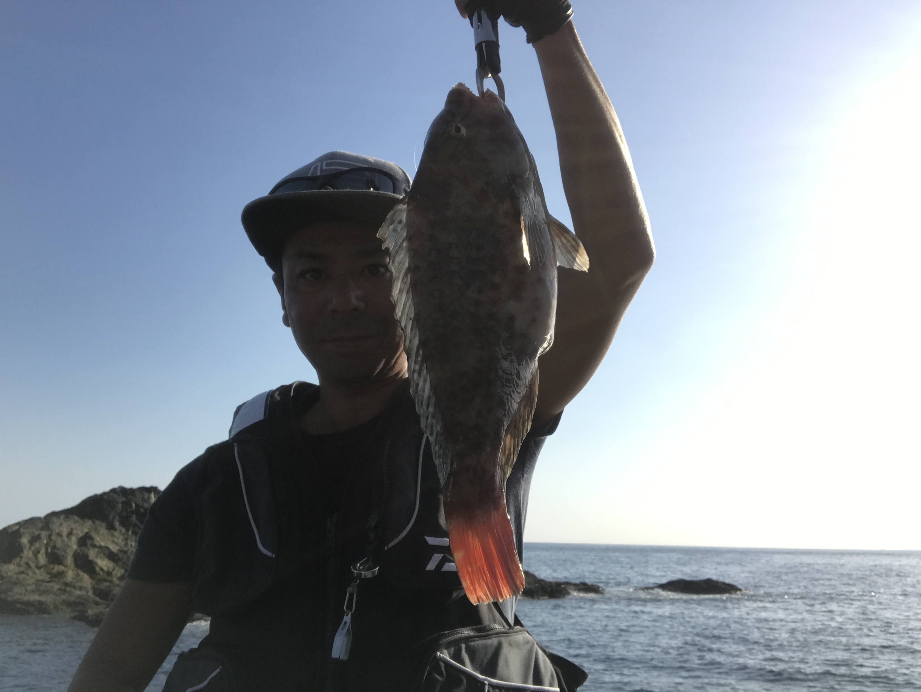 今回は2日連続釣行の為、三重県錦坂口渡船さんにこの日もお世話になりました。前日の釣果が厳しかったのでなんとかリベンジしたいと思い釣り開始。撒き餌を巻き周りを見ると前日よりエサ取りが多くちょっと一安心。早速ウキが勢い良く沈み上がってきたのはサンノジ。外道ですが引きが強く楽しめます。その後は安定のアカハタ、30cmないぐらいのグレ。カワハギやブダイ。前日よりはるかに当たり多く、楽しむことが出来ました。この日は隣の磯でも竿が曲がっており良い日に当たりました。入門者の方でもアタリが多く練習になります。