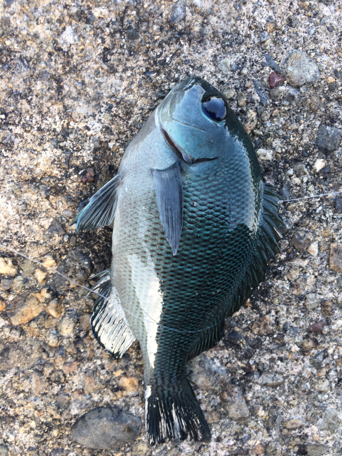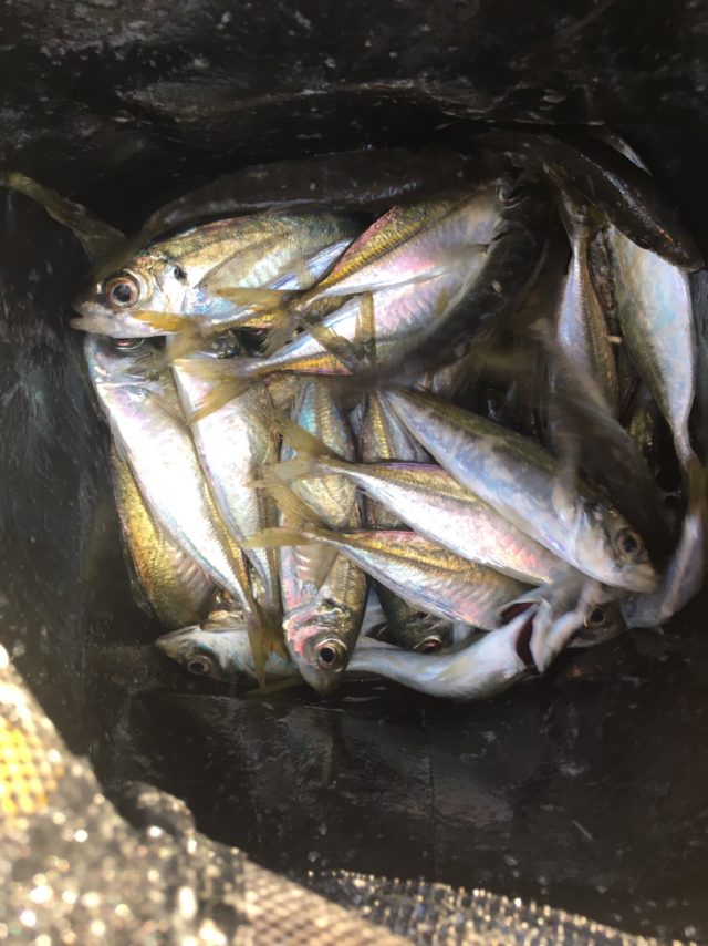 満潮が11時頃だった為、少し遅めに出発しようと思い朝8時に出発し現地に着いたのが11時・・のんびりしすぎました・・・仕掛けをセットし探りますが、そんなに簡単に釣れてはくれません2時間経ち単発での当たりがありコッパグレが釣れますが、中々その後アジの反応が無い状況です。2時ごろになり本日初めてアジが釣れ、そこから入れ食い状態!2連、3連は当たり前!楽しい時間が流れます。1時間程すると魚も単発になり納竿としました。