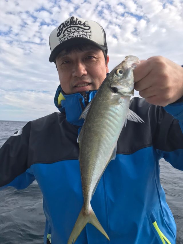 魚探の反応が悪くなってきたのでお土産の鯖、アジを釣りに行き夕飯のおかずを確保してからもう一度ポイントへ戻るといい反応があり、美味いと評判のオアカムロアジを2匹確保。