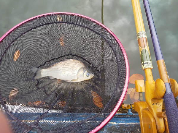 タナを下げるごとにさわりやあたりが出るようになり2本半ぐらいにしたらギルが釣れ始めました。