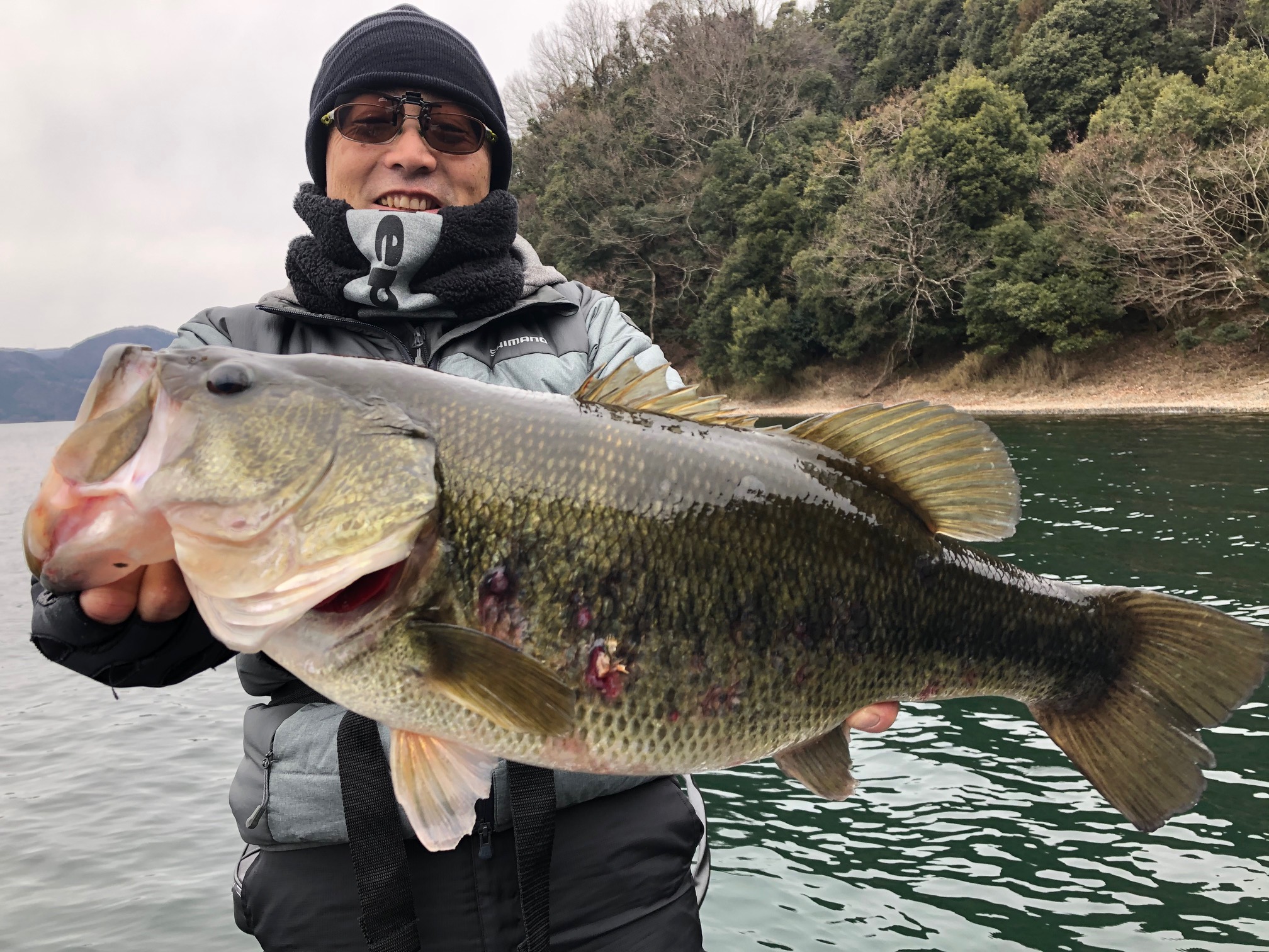 天候に恵まれ最初のポイントでHPミノーのダウンショットでN氏に47cm!幸先良く釣れましたが後が続かず移動。