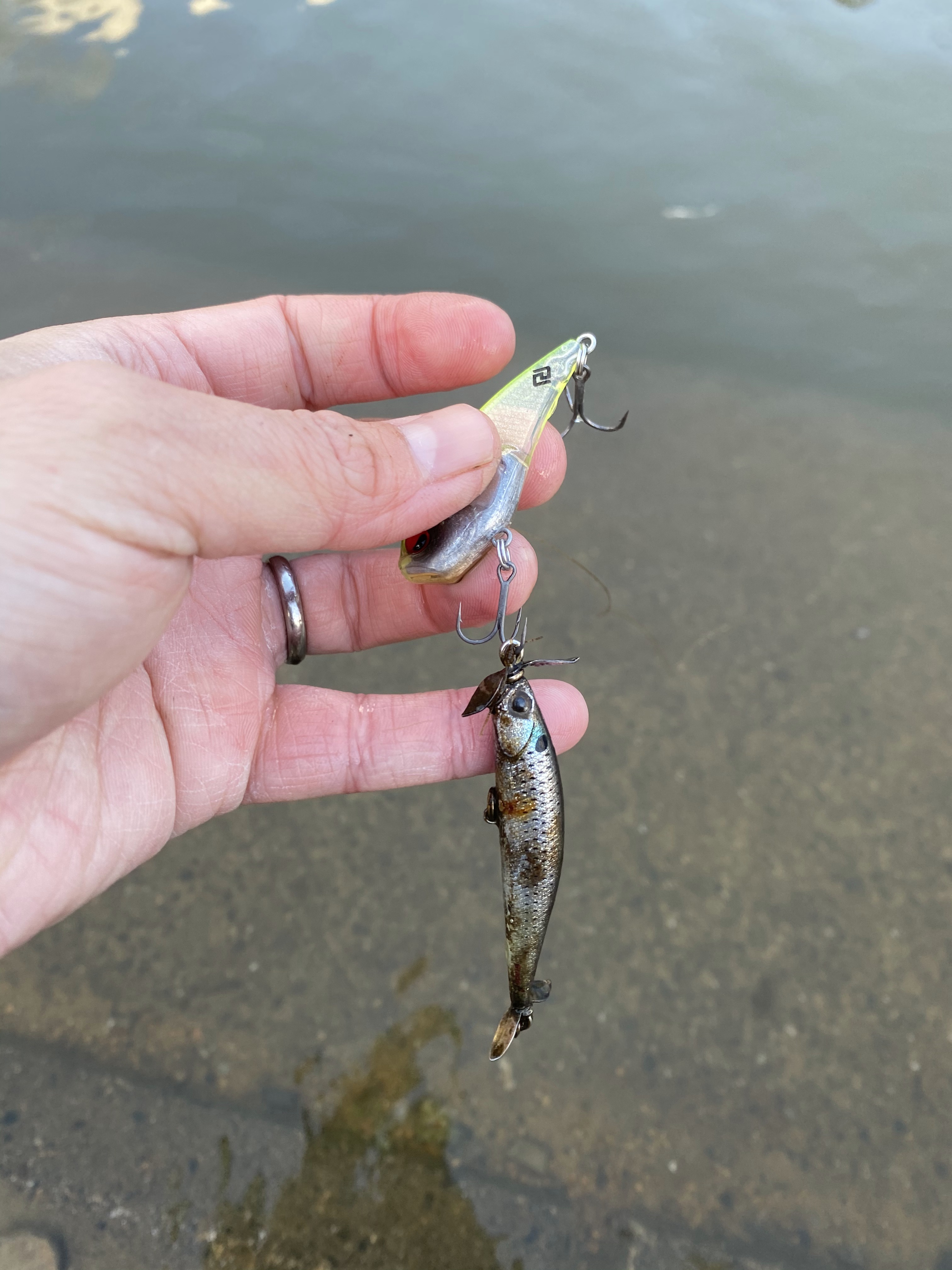 上流域から入り、ドンドン下流へ割と真剣に護岸をシャッド巻いていきますが・・・無。