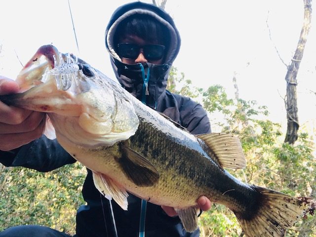 いかにもなカバーやレイダウンにテキサスを打っていくも反応なし、、、、。