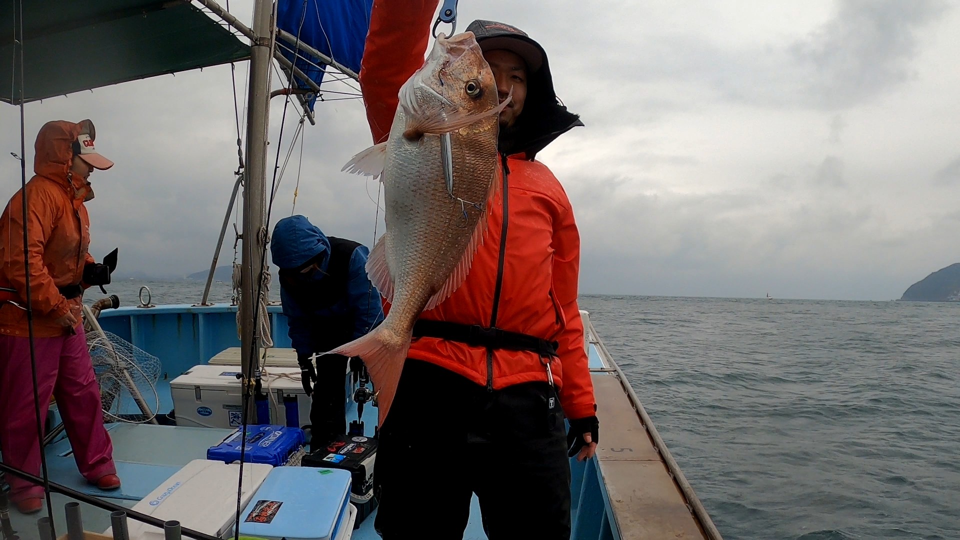 自分はアタリはポツポツありましたが、バラシもあり、釣れたのはハマチ1匹の釣果となってしましました。一緒に乗船した知人はタイラバで真鯛1匹、ジグで70cmの真鯛とシーバスを釣り大満足でした。