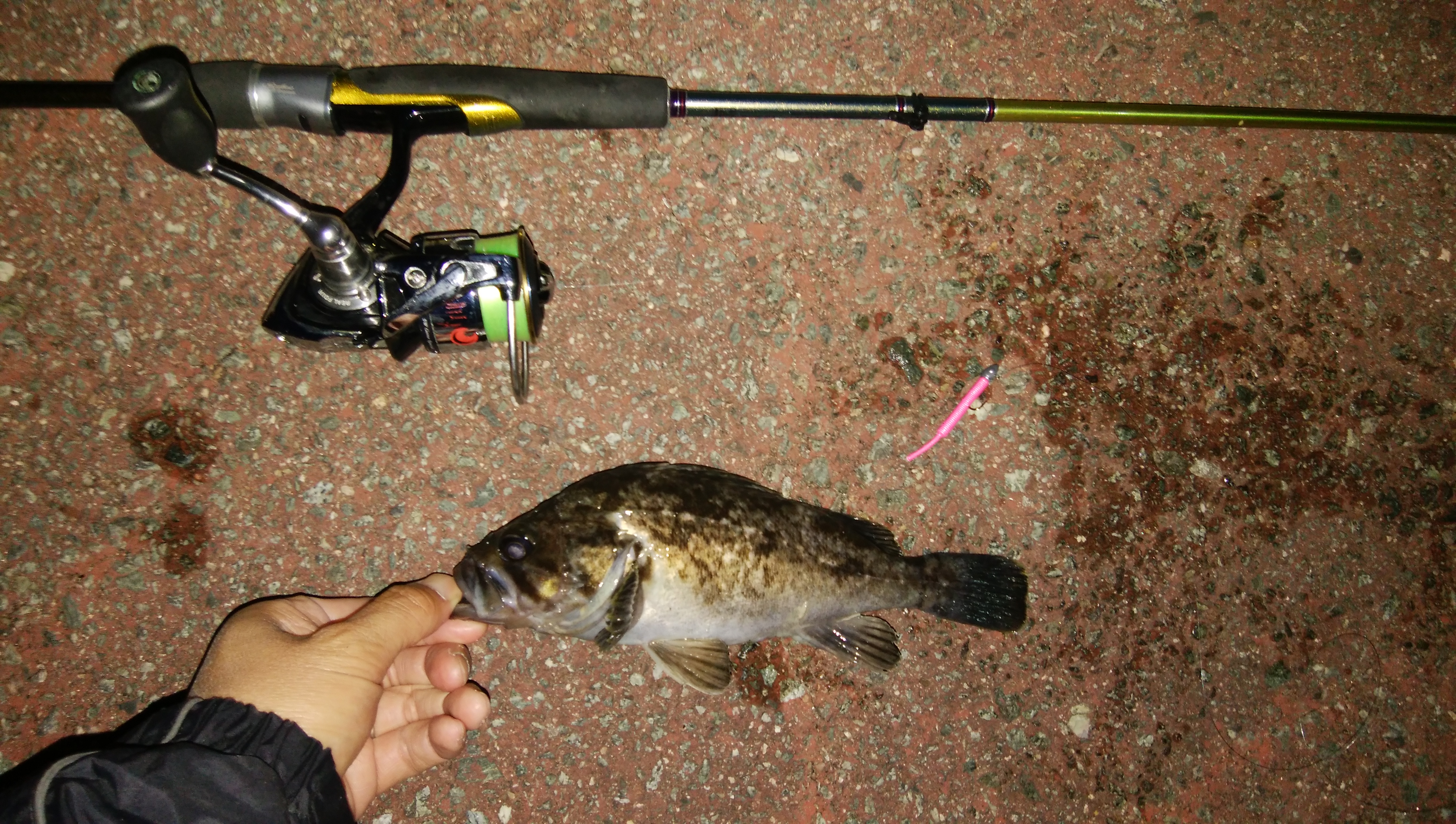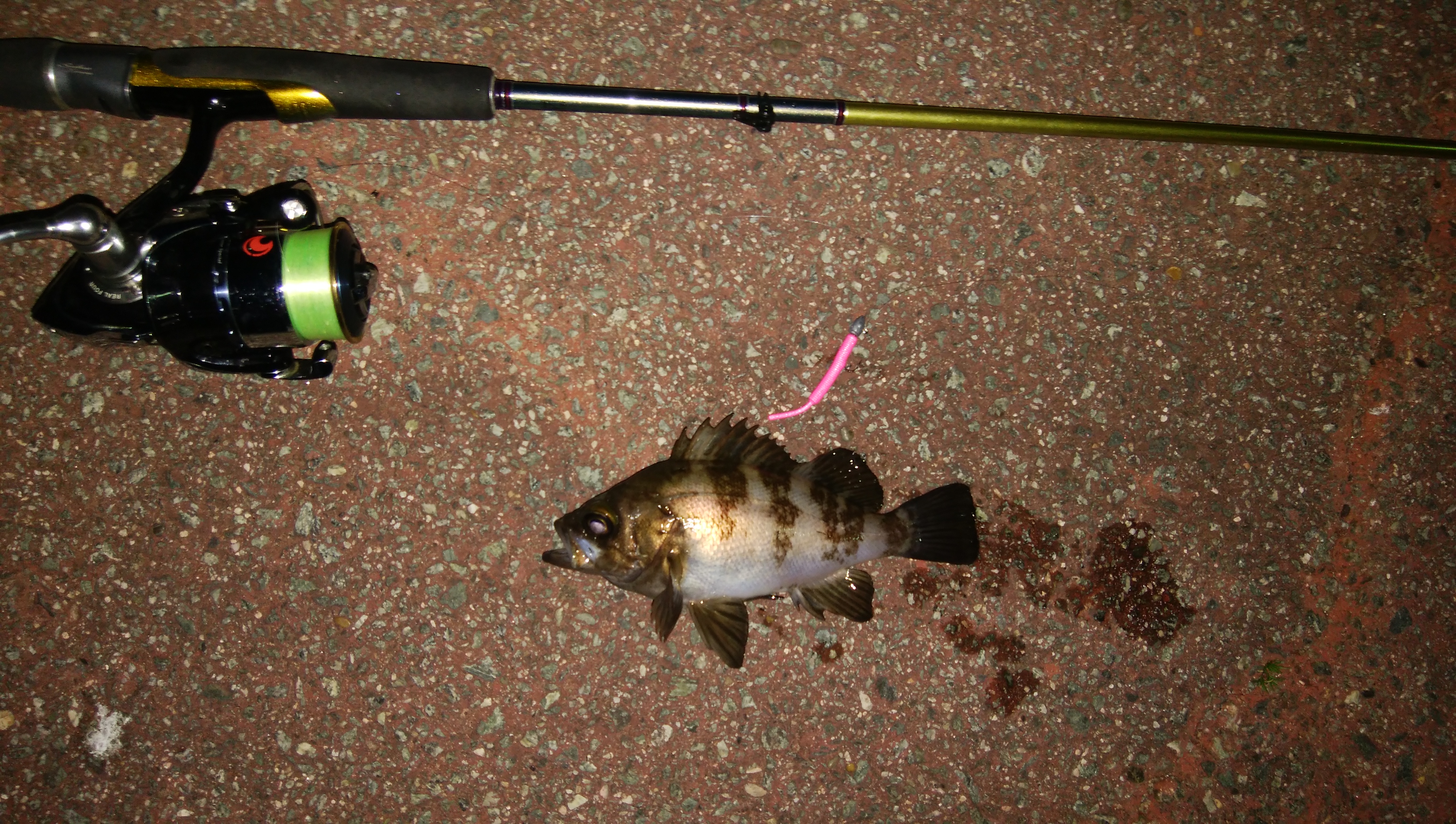 日も仕事帰りにメバリング(o^-^)開始2投目で良型のタケノコメバルo(^▽^)oそれからはアタリ無し…。投げるコースを変えながら狙って行くと本命メバルGETヾ(≧∇≦)それからはメバル2匹とタケノコ1匹追加(*^-^*)程よく楽しめたので終了~(o^-^)ヒットルアーは全てガルプ!ベビーサーディンのピンクでした(>_<)