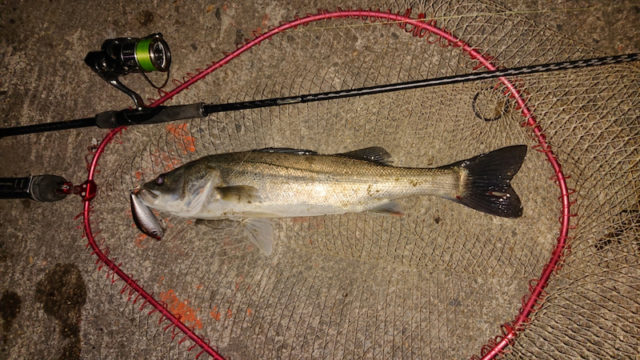 7日潮止まりまで釣りして、一旦帰って食事・休憩をして、日付が変わって8日午前3時頃から夜明けまでシーバスを狙いに行ってきました、気合の超連続釣行です、このパターンもそう長く続かないと察しているので、良い時にエアオグルを使い倒してエアオグルを使いこなせる様に研究するのが連続釣行の真の目的です、7連続釣行全てで50UPのシーバス釣れました、すべてエアオグルです。本日は釣り開始して最初はアタリなかったのですが、後半からポツポツ、アタリが出始め、60cm位のシーバスキャッチ、最近買ったエアオグルのアカメカラーです、かっこいいカラーです!、その後は小型のシーバスを追加、これまた最近買ったばかりのスケパールキャンディカラーです、最後に同カラーで再び60cm位のシーバスを追加して、終了しました。