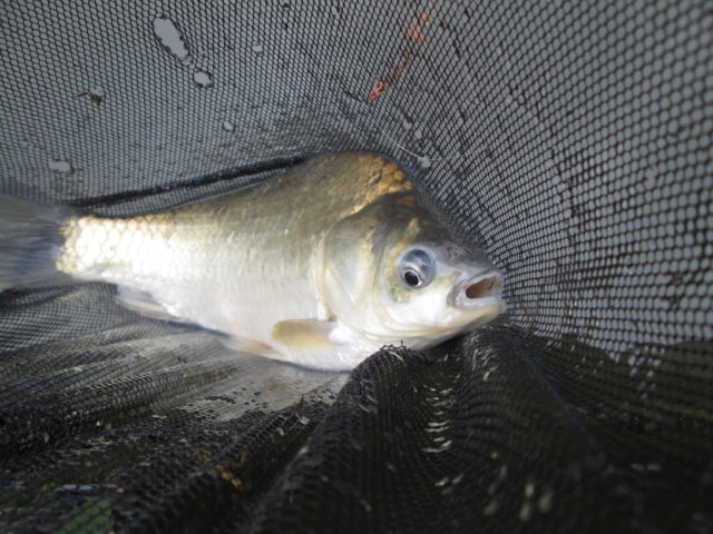 前回先生の田中氏に教えて貰った事を思い出しながら、ウキ下の長さ、仕掛けの長さそしてウキの浮き具合など確認セット万端。エサはマルキューさんの「浅ダナ両ダンゴイエロー」と「ダンゴの底釣り夏」の配合で準備OKです。振り子の原理を利用してほぼ同じ所にエサを落とすことも上手くできました。エサを付けての具合もいい感じです。エサをを撒くこと1時間位からあたりがそして1時間半 来ました。ウキが!あわせもよろしく気持ち良いかかりでした。上唇のど真ん中に掛かっていました。午後からあたりも減って来て困っていたら、オーナーさんからエサの硬さ等をアドバイス頂きまた。復活です。岡田氏と復活!合わせや取り込みが上手くいかず、仕掛けが無くなることとも多かったですが、私は強い味方「ハリスピッタリ」のお陰で無事釣行を続けることが。そして雨の予報でしたのでテントを使いました。結果12匹スレを含むと15匹でした。バラシも多かったです。