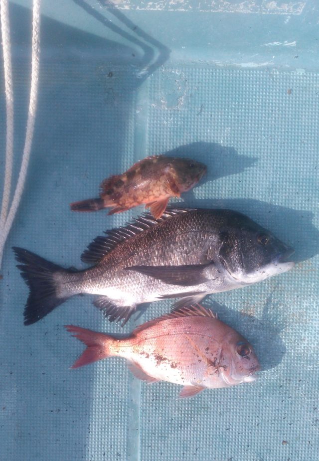 30~40cmのアイゴが多く、サナギ一個刺しで反応が良かったです。