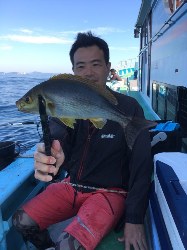仕掛は緑スキン3本針で刺し餌は無しです。オモリ80号でスタート。電動微速でタナを探るがアタリ無し、アクティブに誘い上げながらタナを探ると35m~33mで連発!型もまずまずです。この日はパタパタと連発で釣れるが、時合が短い。ポイントを変えてアンカーを入れ直すたびにアタリは出るがなかなか厳しい日でした。イサキは8枚、チダイがポツポツという感じで苦戦しました。船長によると、いい時は20~30型の良いのが釣れたそうで遅れていたイサキもこれから上向きとのこと。サイズは35cmクラス中心、旬のイサキの刺身は甘くて非常に美味しかった。是非またチャレンジしてきます。