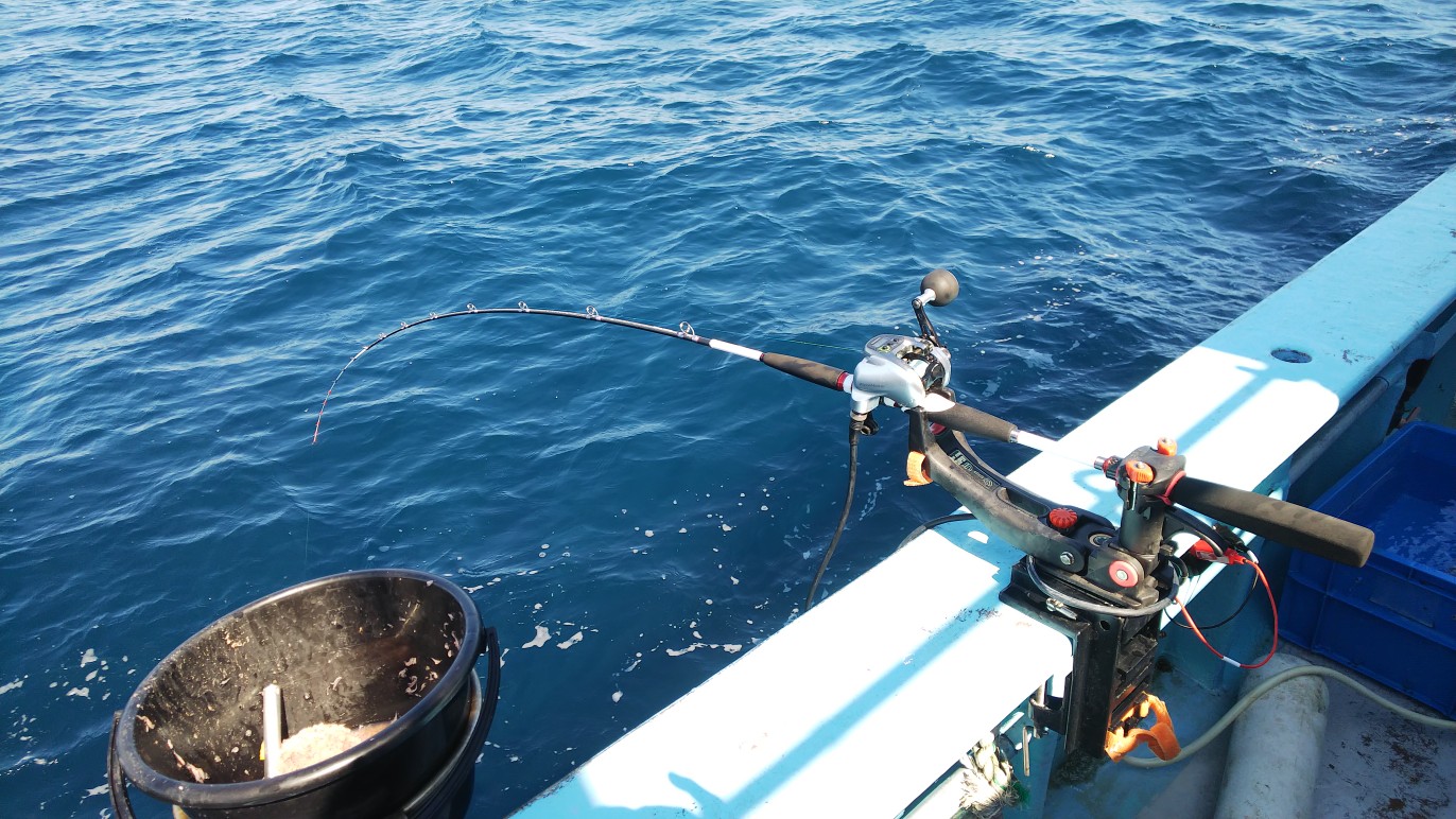 ようやくイサキが上向いてきたようで、石鏡の健勝丸さんで、アミエビコマセのテンビンフカセでイサキを狙ってきました。アミエビと氷はもらえます、サシエは各自準備となります。ポイントは水深45m、40mから30mのタナを探ってみます。