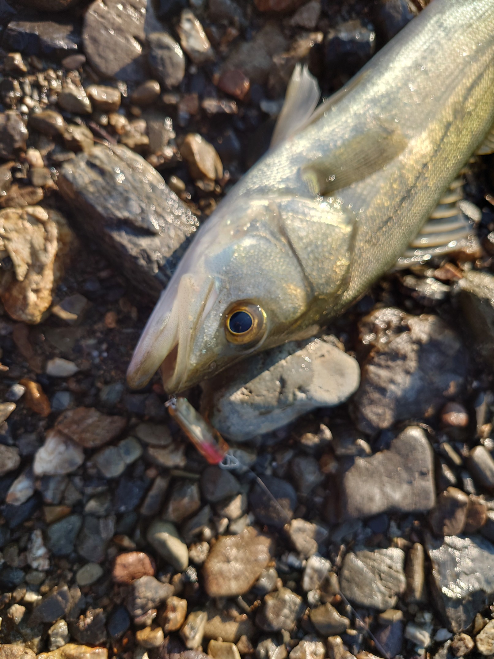 連日体温超えの猛暑!夏派の私としては暑くて気持ちいい?と思いたいところですが、さすがに未経験の暑さに驚きが隠せません。暑いけど…、釣りは別!水面爆発シーンが夢に出てくるくらいハマっているメッキのトップゲームに毎日のように出かけています。(トラウトに行きたいところですが、川の状況が…良くないので)ラン&ガンしながらメッキの状況を確認していくのですが昨日のようにどのポイントでもメッキの姿は見えますがトップにまで出てくる活性がない様子…。確認のため普段は使用しないミノーでチェック!簡単に釣れてしまいました。「ん・・・・、微妙??」とにかくトップで水面が爆発するシーンに脳内がヤられているので(笑) ちょっとしたカケアガリを発見!ココへメッキがベイトを追い込んで捕食しているであろうイメージでポッパーを操作してくると…、「BOMB!」と強烈な水面爆発!ヒット!ジャンプ!んむ…?シーバスでした。シーバスのバイトは強烈なサウンドで心臓が爆発しました(生きてて良かった)。その後メッキは来ず帰路につきました。