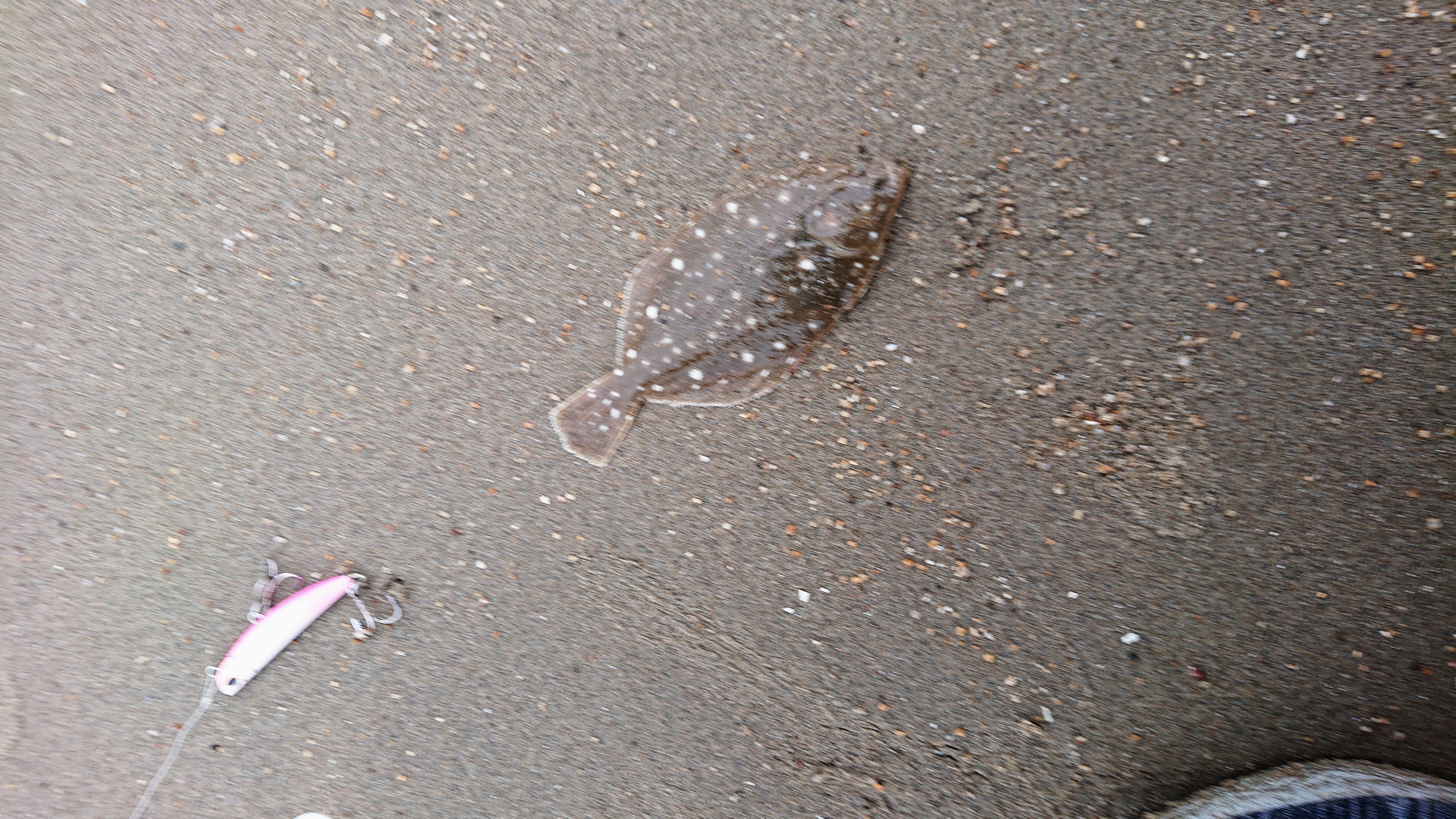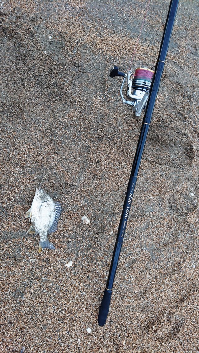 先日、当店盛山チーフに大きなカレイが釣れたと聞いてカレイを釣ってみたい!!ということで近郊サーフに盛山チーフと赴きました。カレイ仕掛けに青イソメをつけて駆け上がりのある70mくらいの所に投げてあとは放置。置いてある間はとりあえず、何かあたらないかとルアーを投げて待ってました。時折ですが、カタクチイワシの群が50m位のところまでやってきており、もしかしたら青物もか!と思いましたが、いなかったようす。しかし、明け方からセイゴクラスの魚のボイルがたっており、盛山チーフも魚を釣ってられました!投げ釣りはというと初っぱなはキチヌ、そして、キス(まだおります。)、ルアーでカレイ(そっちじゃないんだよなー)でした!投げ釣りのカレイはもっと竿を出したり、撒き餌の導入も考えるべきだなと反省でした。次は投げ釣りで釣るぞー!!
