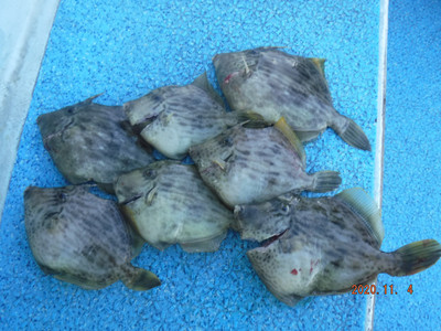 今回は七福丸さんにお邪魔してカットウとカワハギ釣りに挑戦してきました!前日の雨の影響か風が強く波も高かったため近場での釣りになり、いつもより渋い中最初の1時間のカットウ釣りでカワハギ3枚とフグ1匹。その後カワハギの胴突き仕掛けでカワハギ4枚とフグ1匹を釣ることができ、初めてにしてはよく釣れた方だと思います。仕掛けは根がかりのしにくい下にオモリをつけるタイプがおすすめです!
