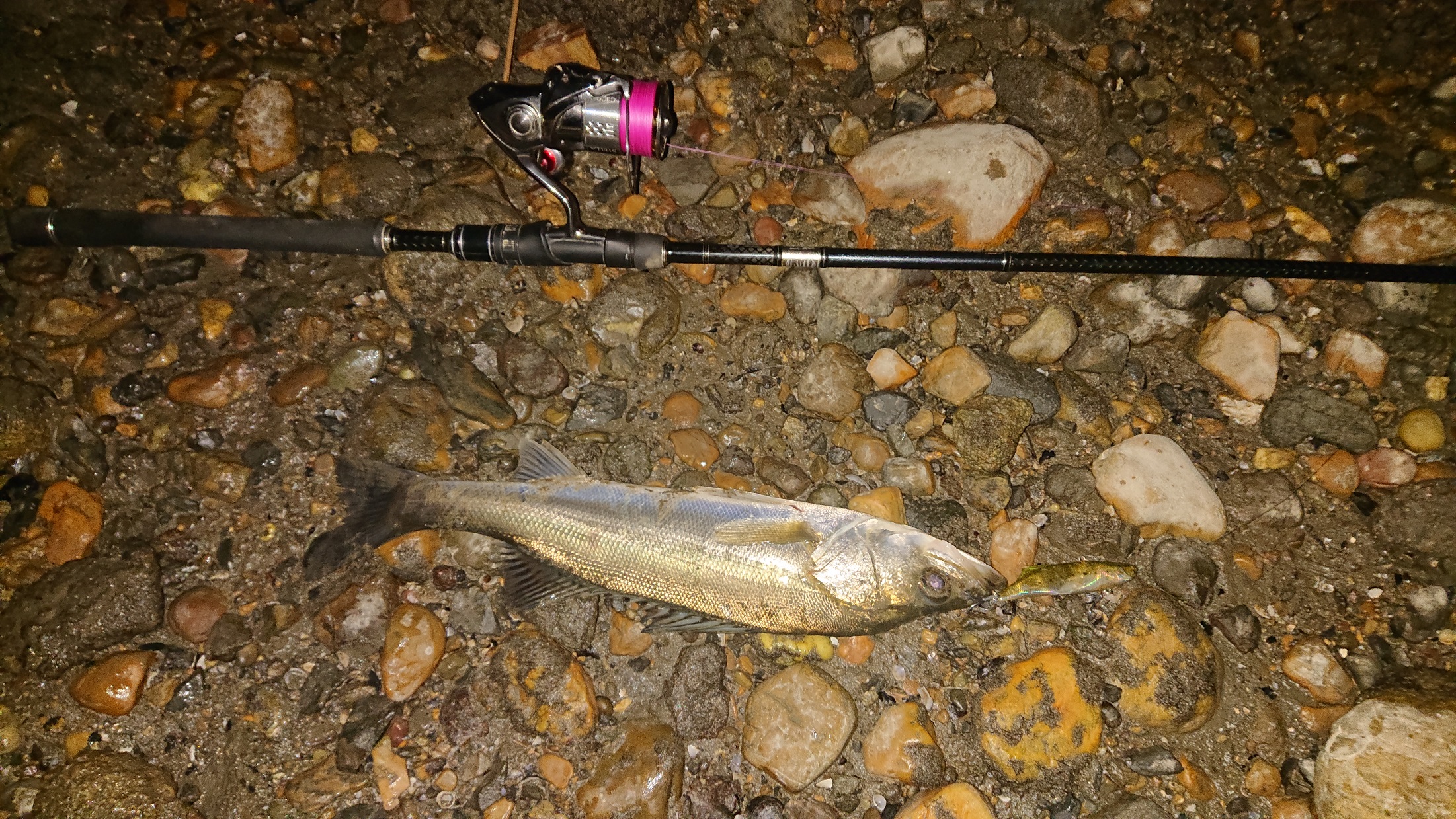 名古屋港に仕事終わりにシーバスを狙いに行ってきました。最初にレビン20gを投げているとシーバスヒットして1本キャッチするも続かず、ポイント移動しました、満潮下げ始めで知人が2本キャッチしたポイントに入れ替わりで入って、粘ってなんとかマービー90で1本キャッチして終了しました。