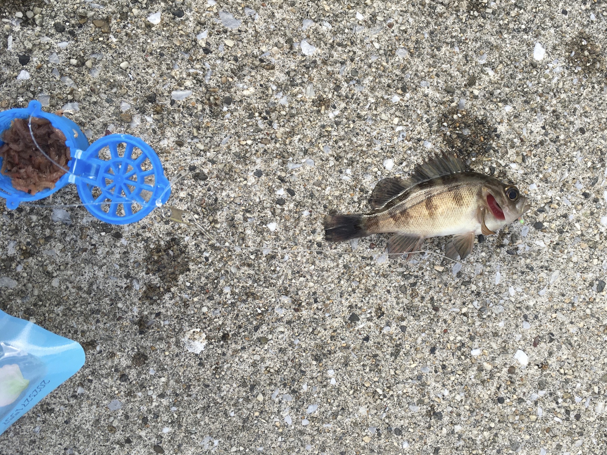 いつものルアータックルにそのままサビキ仕掛けをつけるお手軽タックルで釣り開始!しかし、回遊魚の気配は全くなし…。ですが、堤防際に群れているメバルが数匹遊んでくれました!もう冬の釣りにした方が良さそうですね。