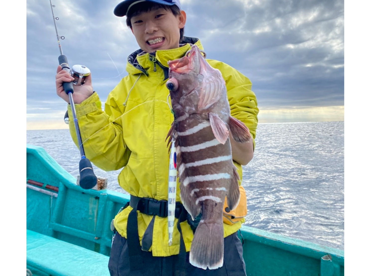 海桜丸さんでティップラン!風が強く船が流れる状況で朝イチ同船した2人がダブルヒット!続いて私も水深40mでダートマックスTR30g+40gシンカーの組み合わせでヒット!900gオーバーをキャッチできました♪♪シンカーは様々あると状況に対応できそうです。その後は80mでジギング!ドテラなのでスパイナロー200gを大きく動かしているとずしっとした重みが。マハタでした!その後船ではシオ、ハマチ、ヤガラが上がりました。ティップラン&ジギングでも出船中の「海桜丸さん」はじめてのティップランでも優しく教えて頂け、釣れます。オススメです!