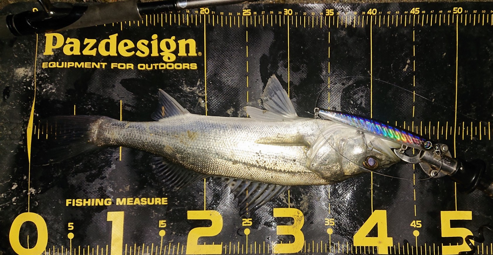 あけましておめでとうございます!、1月1日仕事終わりに初釣りでシーバスを狙いに行ってきました。最初はシャローが隣接するブレイクで、潮が引いたタイミングでシャローにいたベイトの居場所がなくなりブレイクまで落ちた所でシーバスの活性が上がるのですが本日はシャローにベイトが少なかったのかそのタイミングでは不発でした、ここで喰わないと厳し潮位になったので手前のブレイクは諦めてかっ飛び棒シャローライトで沖のブレイクを流しているとヒットしてシーバスキャッチ出来ました、その後再び同じ様にやってシーバスを追加して終了しました。気分的な問題ですが1月1日23時ヒットと,なんとか元旦中に今年初シーバス釣る事が出来ました。