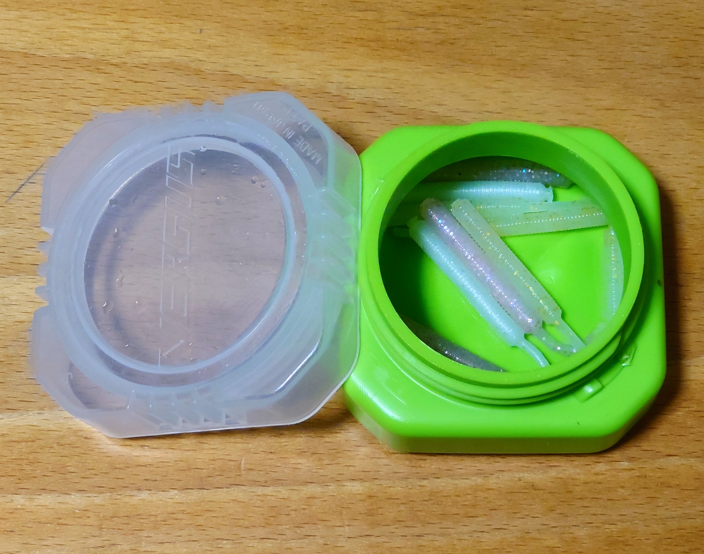 このサイズのカラーはグリーンとホワイトの2カラーでワームタイプで分けるのに便利です。