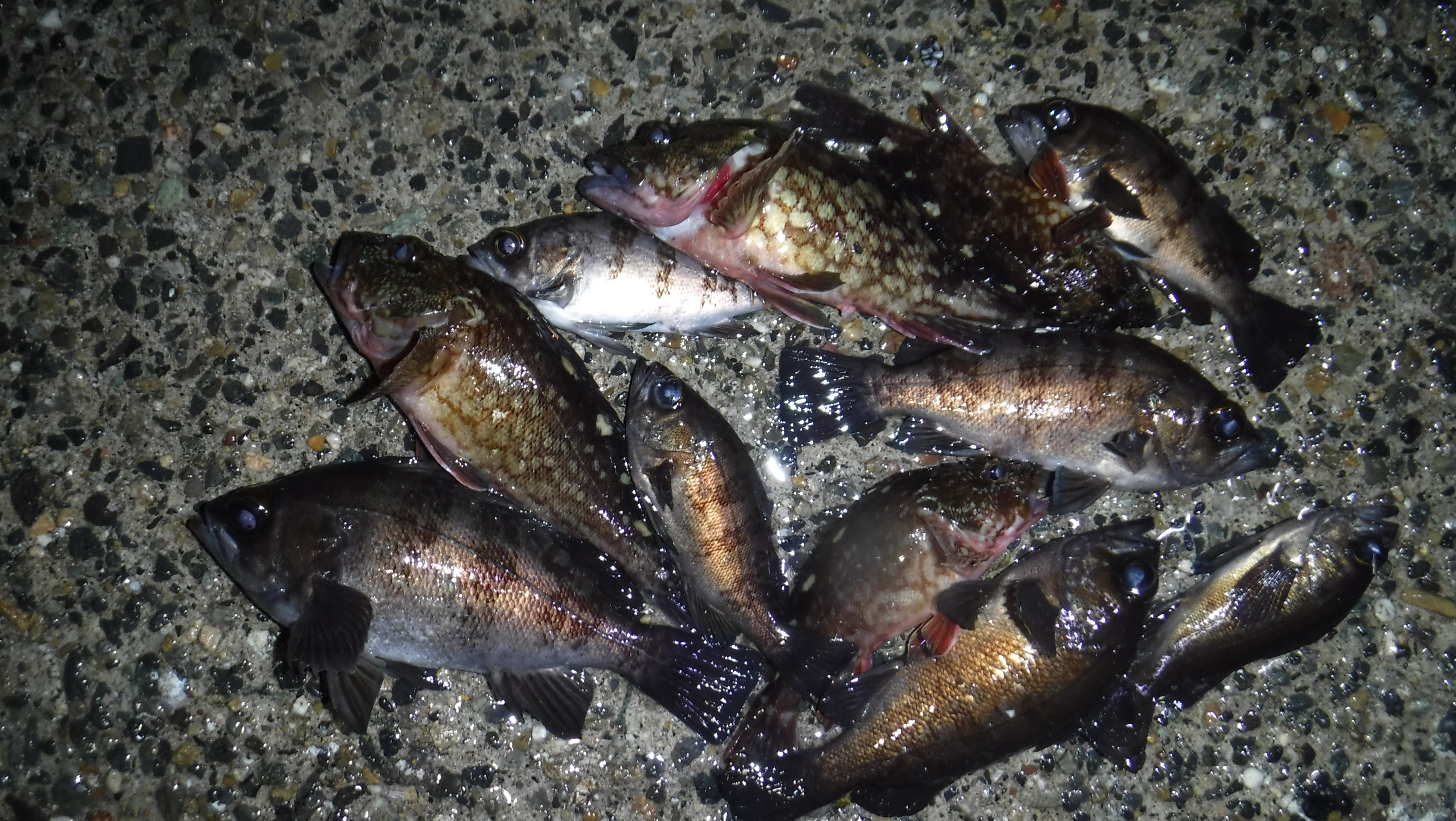 師崎周辺にメバル釣りに行ってきました。夕方からの釣りスタートで、電気ウキの流し釣りで狙っていきます。仕掛けはメバル針10号を使用、堤防周りの沈み根を中心に探りました。水温が下がり前回より活性が低い様子で、魚からの反応が少し薄いようでしたが時合の時間帯にはカサゴ・メバルが釣れてきました。ウキ下を調整して狙いタナに変化をつけていくと、数釣りが楽しめました。