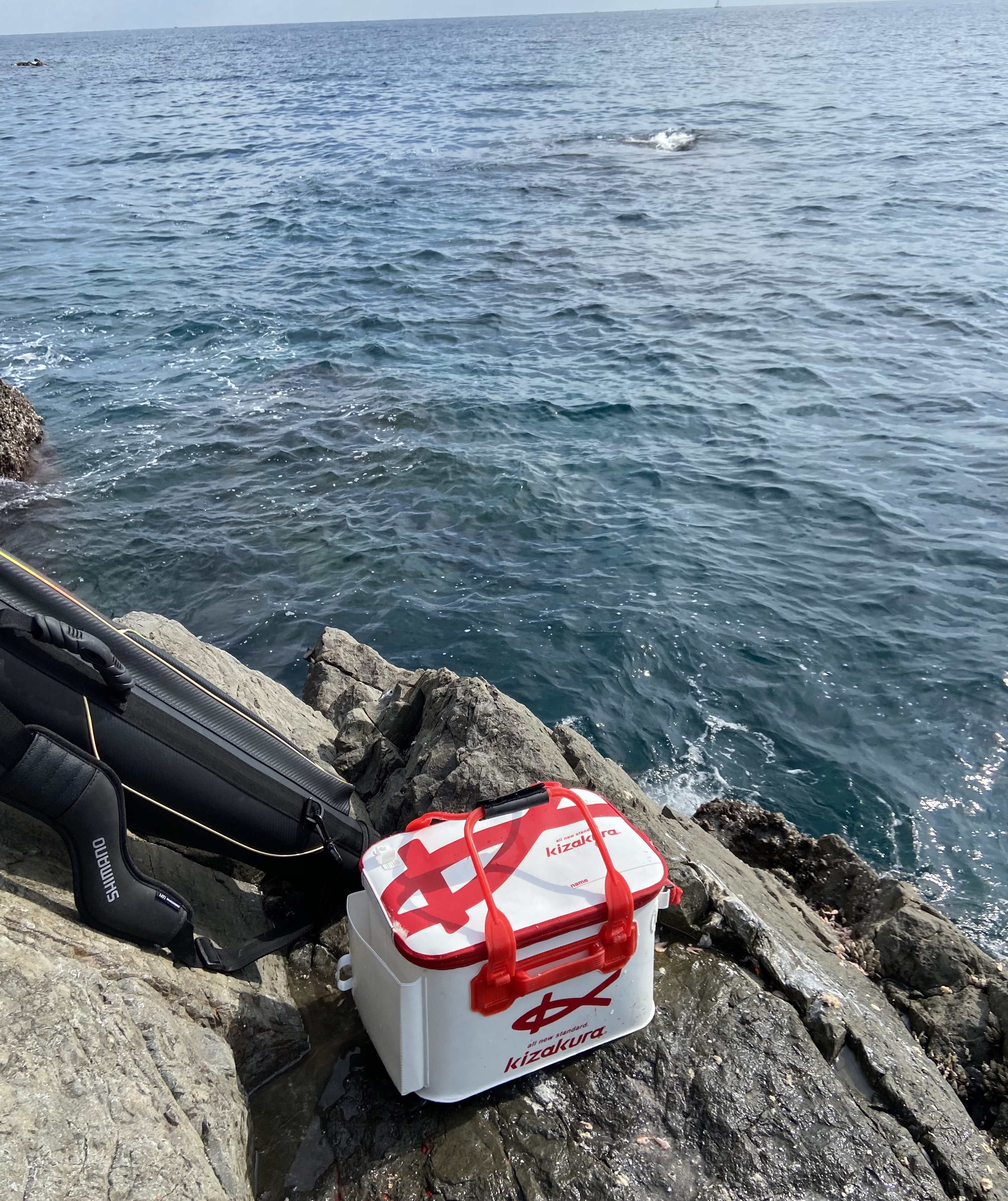 降りるときに船長から「昨日は良く釣れていて40cmオーバーも2枚釣れていたよ!」と軽くプレッシャーをかけられ乗った磯はウノクソ。この磯に乗ったのは初めて。コマセを準備し、仕掛けをセット。コマセを撒きコマセの煙幕の中にウキを入れコマセと同調させグレを狙います。