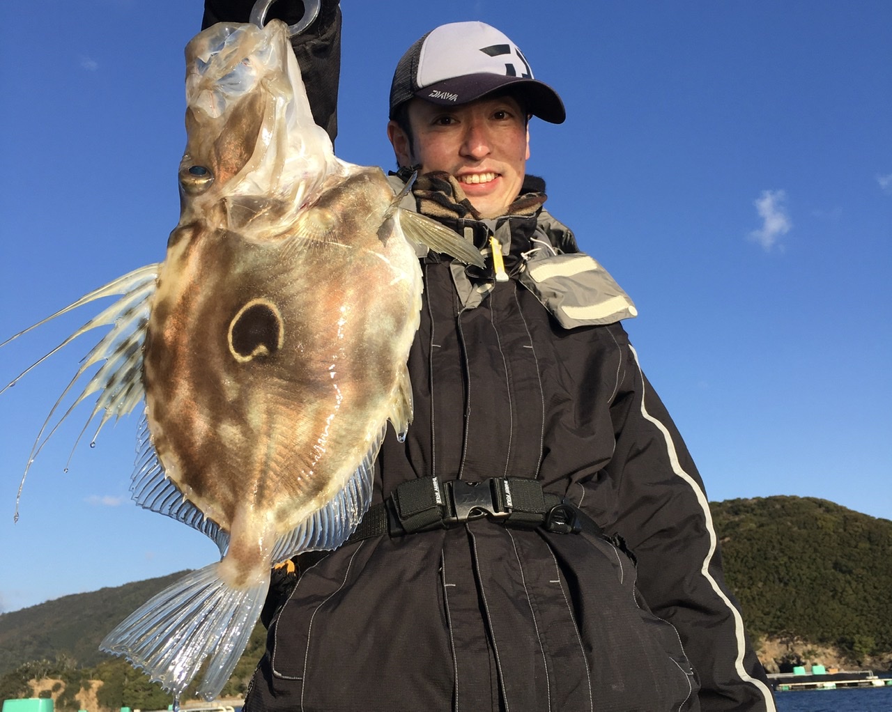三重県迫間浦の澤村渡船さんで筏釣りを楽しんできました。前情報だとダンゴ釣りで良型のアジ。アジを泳がせてヒラメが釣れている。一応、活きアジを買って来て下さい。との事でしたのでエサ屋さんで泳がせ用のアジを購入。6時30分に出船し渡してもらった筏は水深20Mちょっとあります。まずアジを泳がせ仕掛けにセットし投入。ちょい投げでキス、ゼンメを釣っていると泳がせ仕掛けの竿先が入りました!上がってきたのはデカいマトウダイ!これは嬉しい!ダンゴ釣りも始めると底でダンゴが割れてすぐにアジがアタリます。良型のアジが掛かるとやり取りを慎重にしないと身切れしてバレるので、これもおもしろい!せっせと釣っているととなりの平岡くんの竿にもアタリが!またも良型マトウダイ!おいしい魚を確保して大喜び。さらに昼過ぎにまたも平岡君の竿にアタリが!真下じゃなく少し投げてみたらアタリましたと上がってきたのは1.5キロ位のアオリイカ!4時30分で終了し、残念ながらヒラメは上がりませんでしたが大満足でした。帰宅後はマトウダイ、アジの刺身。次の日はアジフライ、マトウダイの煮付けと、とてもおいしい晩御飯を頂きました!