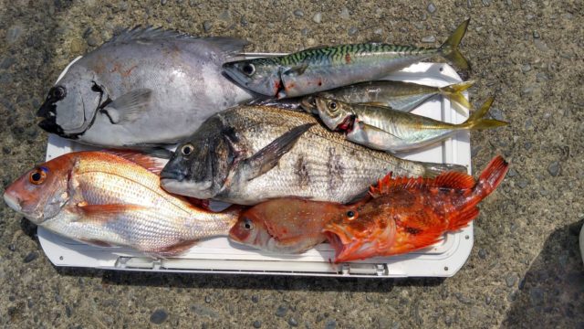 クロダイでした!その後もポツリポツリとカサゴ、イトヨリ、サバなどを釣り、