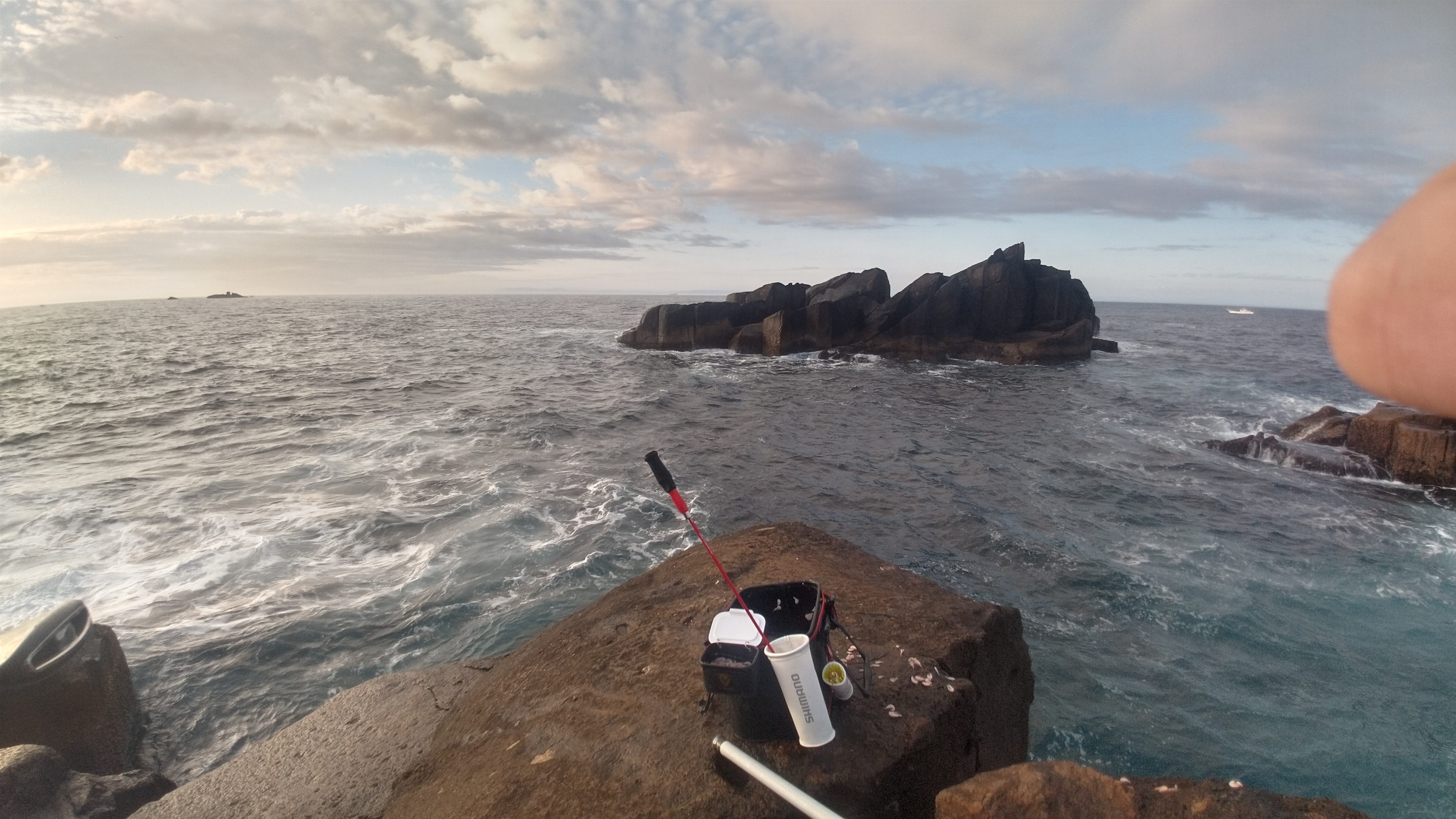 尾鷲の梶賀で大黒周りの磯が解禁しましたので行ってきました!午後から雨予報ですので午前中だけの釣行です。渡船は榎本渡船様にお世話になりました。少し波があり、磯はエビスの沖大黒の裏側になる辺りに渡してもらいました。水道狙いで流れが複雑なのと、サラシもあり表層のエサ取りを突破させるのにウキは3Bからスタート。ボイルを撒くとこの時期らしいタカベがわんさか出てきます。仕掛けを流しても取られるばかりなので、際を狙うとぽつぽつグレがヒットしてくれます。この日最大の40㎝も際でゲット!その後は際でもカラフルなエサ取りに盗られるばかりでグレも掛からず…仕掛けをこまめに変えながら色々試しましたが、昼頃にやっと30㎝のグレが釣れただけで終了となりました。