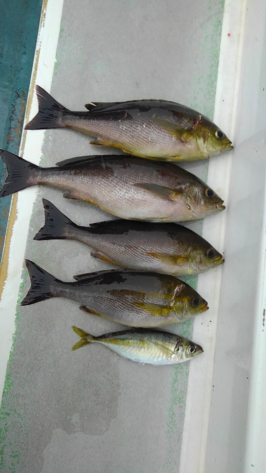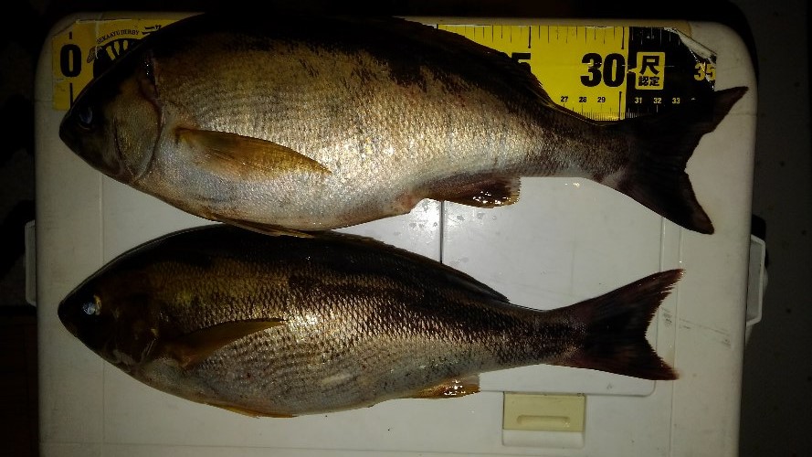 久しぶりに、イサキ釣りに長浜店長と釣行してきました。今回は豊浜の竜宝丸さんにお世話になり大山沖の抱卵イサキを狙いました。事前の情報では小型のイサキが多いとの話でハリス2号の仕掛けを持って行きました。しかし、良型のイサキ?に2回ハリスを切られので太い仕掛けを用意して下さい。今回の釣果は渋かったが、何とか36㎝を頭に4匹釣る事ができました。
