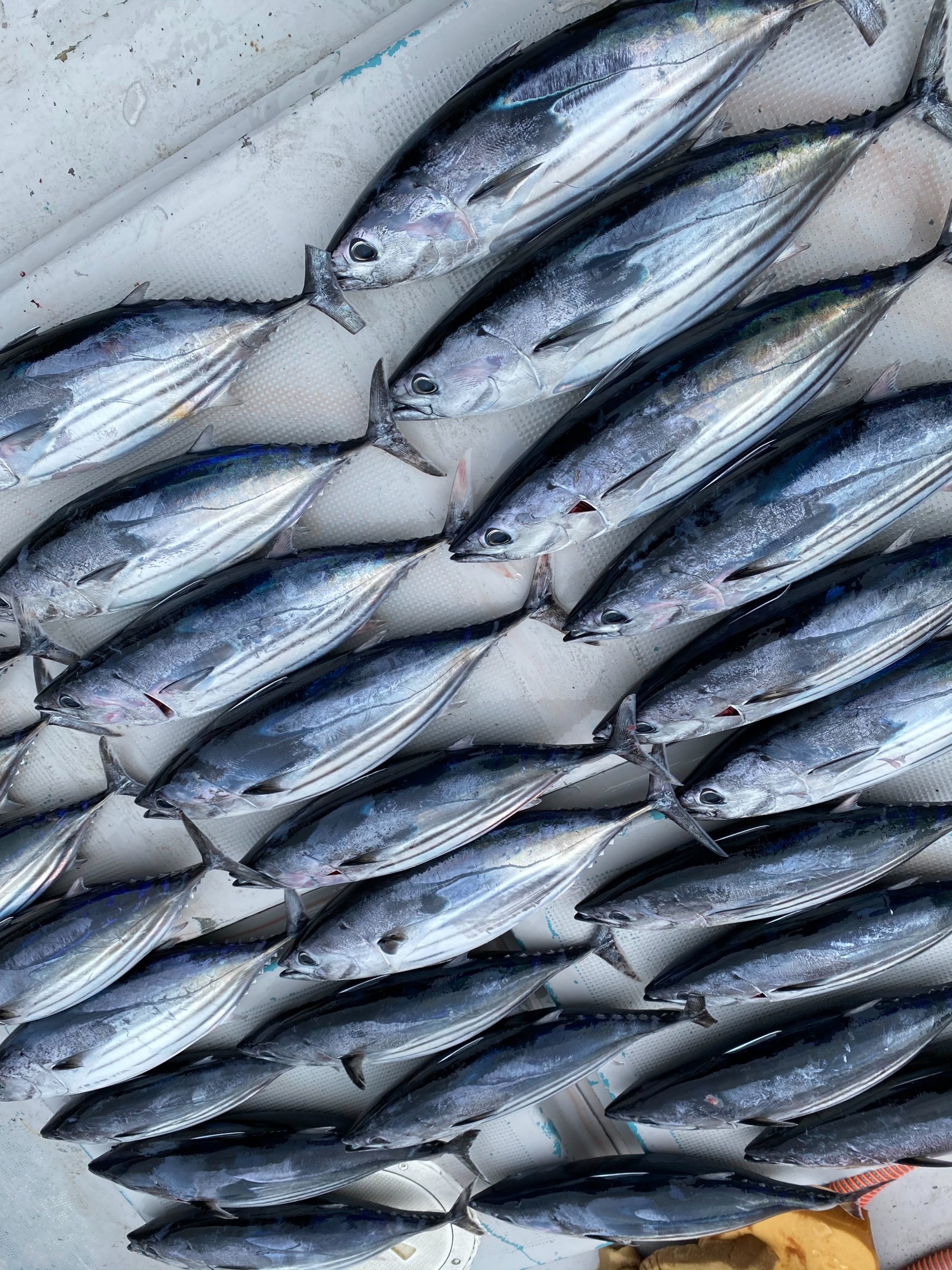 キハダタックル購入して準備万端でしたが、前日までの状況からカツオタックルを新調して出船!前半ナブラ探しでしたが、群れを発見してから連発!ソナーを駆使した船長の指示通り投げるとカツオがおもしろいくらいアタックしてきます。キハダが不発でしたが、全員で28本!サイズも2キロ前後で食べごろでした!