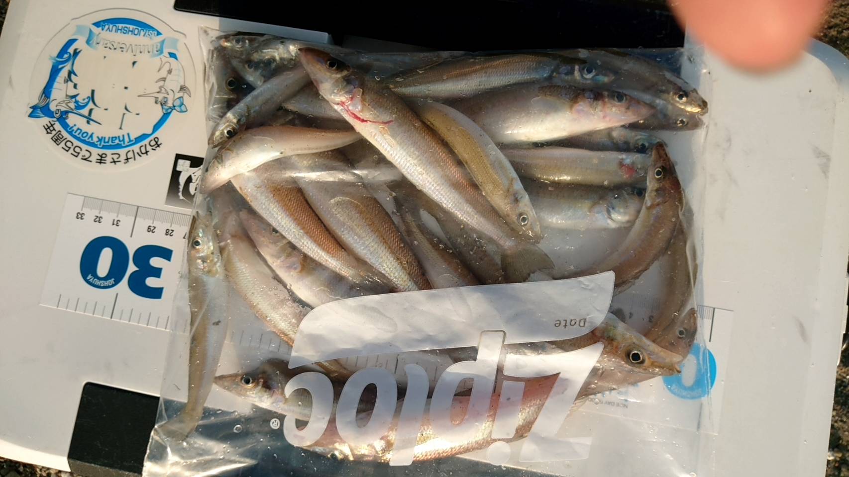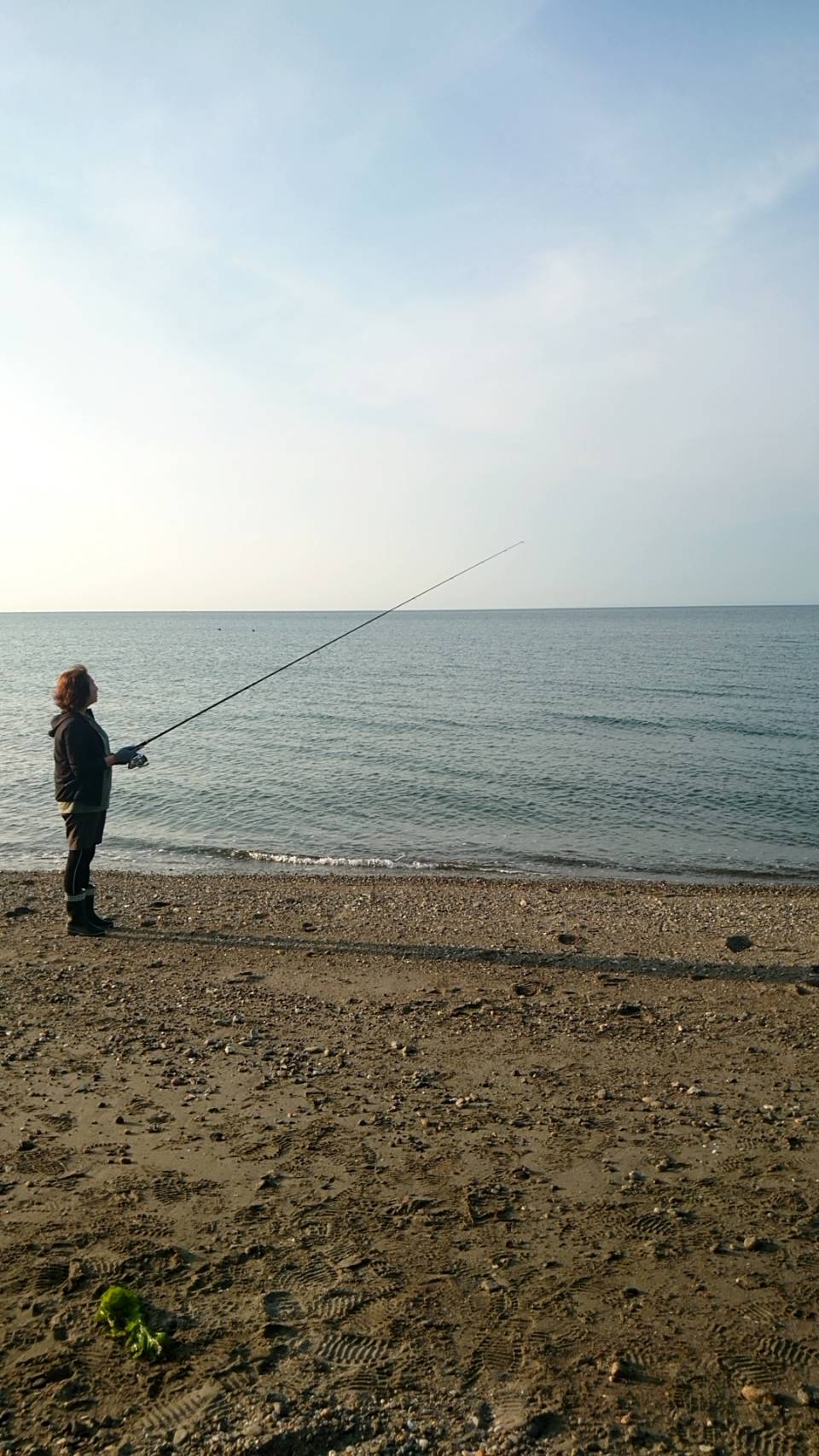 朝、5時に目がさめたので浜へ車を走らせると平日なのに沢山の釣り人がいました。砂浜沿いの堤防上の道を走らせると空きが有りました、風も波もなくいい感じガイドラインを通し天秤を付けて一投目4色➕力糸は飛ばして誘いを入れると速攻アタリがありました。巻き上げて来ると20cmはないがいいサイズのキス、三本バリでやっていましたが他のエサは残っていました。やはりこの時期は一匹ごとに合わせ入れて回収した方が数が伸びます。3時間ほどで20匹釣りました。