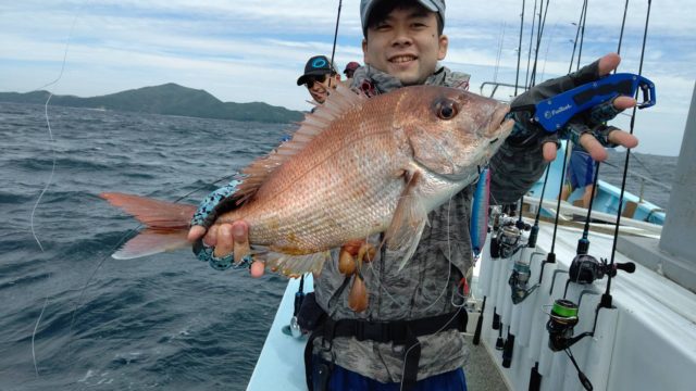 鳥羽石鏡港出船のミスターこーじさんにお世話になり、近海ジギングを行なってきました!結構な横風と、波でしたが意外に潮が動かず渋い状況。。1日通してファンツールのカーブジグを引き倒し真鯛2匹と大型のサバをポロポロヒット!最後はせっかくのサワラバイトをフックを切られバラしてしまい悔しい形でしたが、楽しい釣行となりました。竿はオーシャンセンサーLJPを使用。150gくらいまではL、それ以上はMLが使いやすく感じました。曲がりもよく魚がかかった際はしっかり持ち上げるパワーもあり使いやすいです。