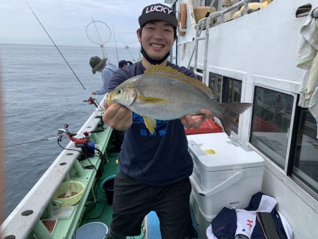 毎年必ず行くイサキ釣りに今年も七福丸様にお世話になり行って来ました!この日は天候も良くウネリも無く釣りやすい一日!船長の指示だなで待つとすぐにヒット!うまそうなイサキ!その後ポツポツ釣れ続けポイントを変えると今度はサイズアップ!40㎝近いイサキが船中ボコボコ!イサキ以外にもグレ、カサゴ、シマアジなども上がっており楽しい釣行になりました!アタリがない時間などは付けエサでイカ短やオキアミを付けると良く釣れました。