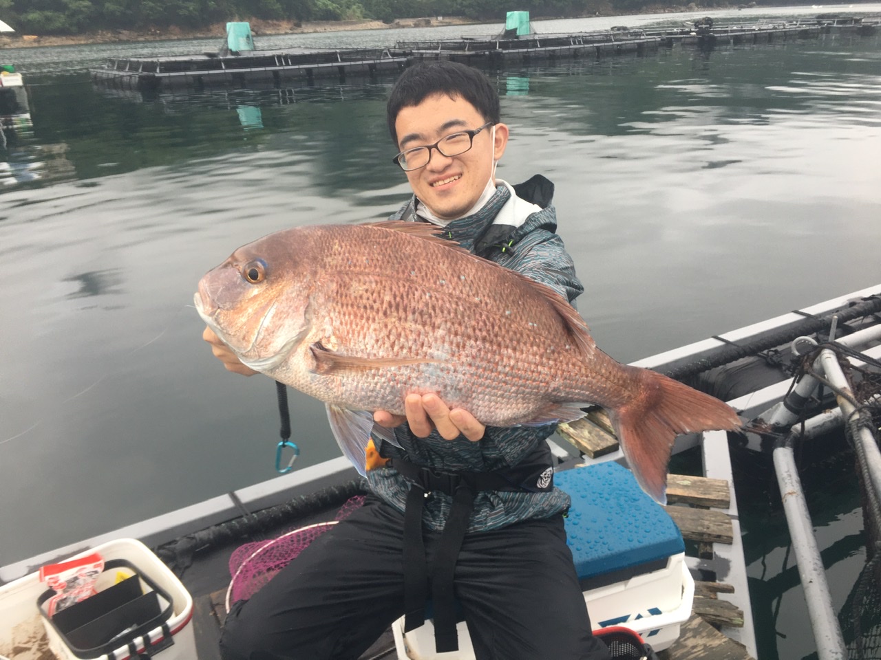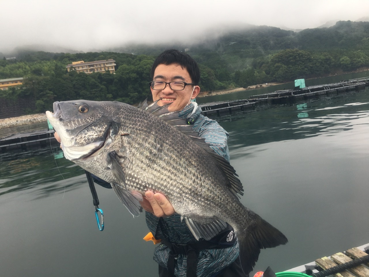 三重県尾鷲の光栄丸さんに行ってきました。マルキューの新製品「激重ペレット」と「大物にコレだ」を使っての実釣会です。マルキューアドバイザーの工藤さんが2年もテストを繰り返して完成したエサです。三重チヌパールに激重ペレットと大物にコレだを各1ずつ水多めでウエット気味に仕上げると水深20Mくらいの所でも7〜8回軽く握るだけのダンゴが作れ、比重もあるのですばやく底まで到達すると教えてもらいました。養殖コワリに乗せて頂き実釣スタート。私は根魚とアジばかり。しかし横の平岡君は55センチの真鯛や53センチのチヌと好調に釣ってます。様子を見に来てくれた工藤さんからもう少しウエット気味にして、ダンゴの割れを確認しなくても良いから糸を少しふかし気味にしてとアドバイスを頂きました。さし餌をローテさせながら打ち返していると、終了の時間間際にようやく40センチ弱のチヌを釣り上げることができました。アジは大きいものだと25センチ程あり脂が乗っていて美味しいおみやげになりました。連日、大物のチヌ、真鯛が上がってます。皆さんもマルキューの新製品、激重ペレットと大物にコレだを使って、大物を狙ってみてください!
